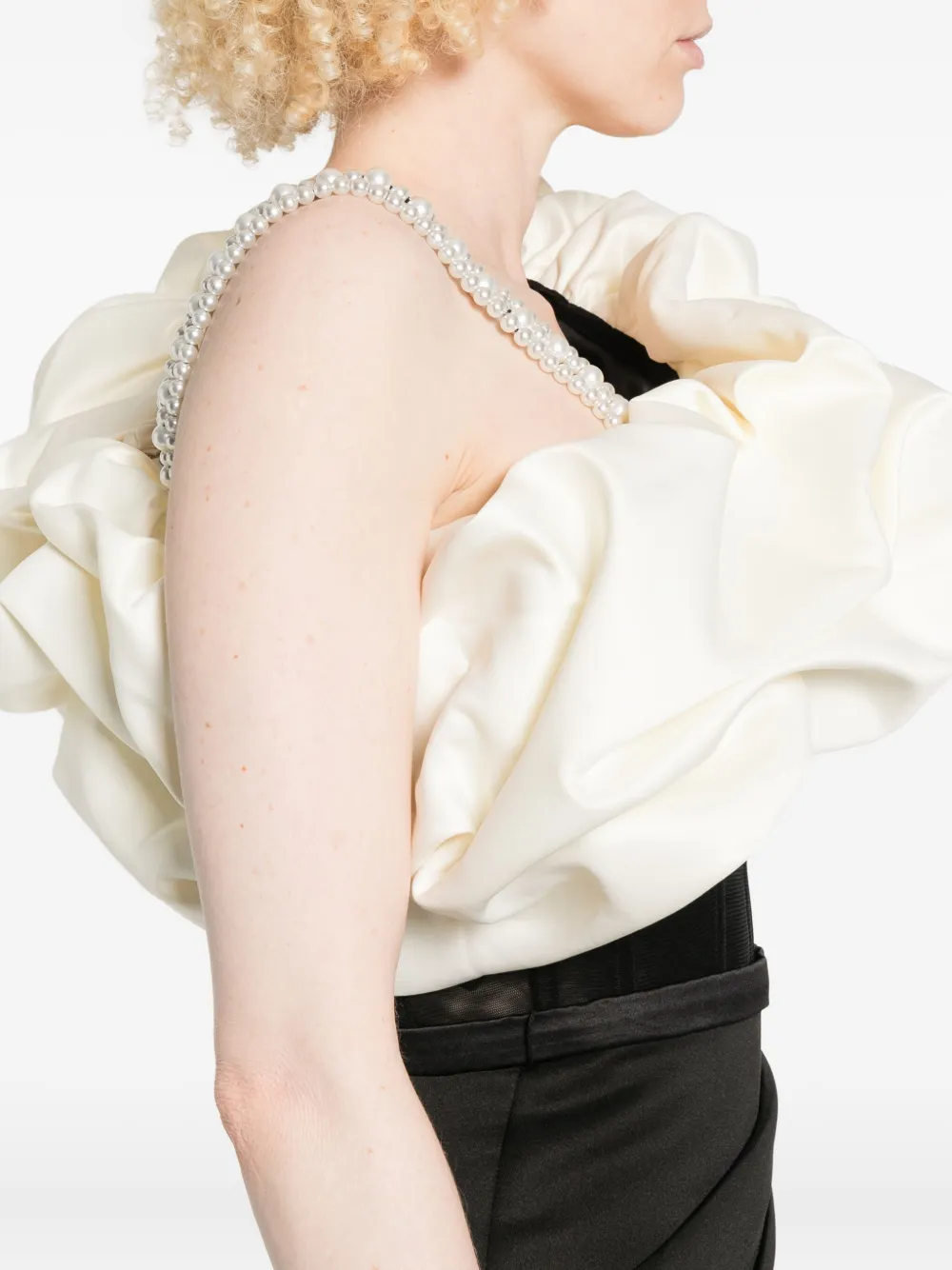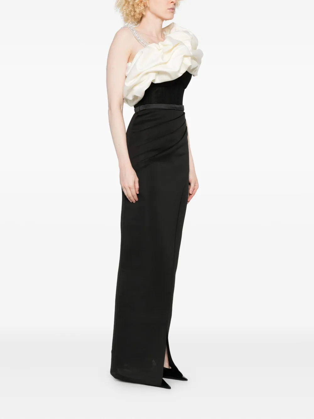 Черный оборки на плечах отделка искусственным жемчугом приталенный лиф драпировка высокий разрез на бедре