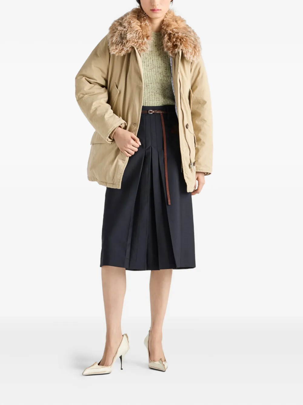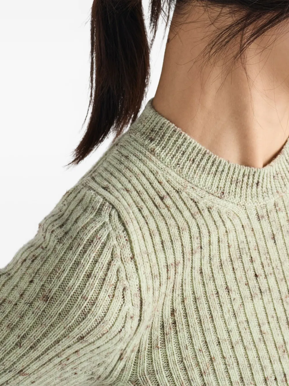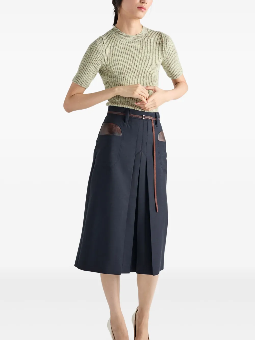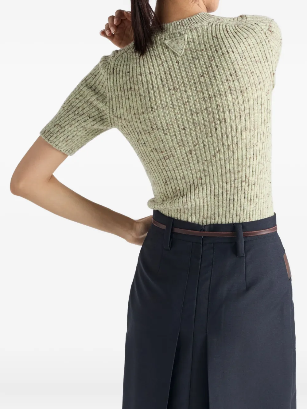 Короткий рукав, вязаный свитер в рубчик Prada, зеленый