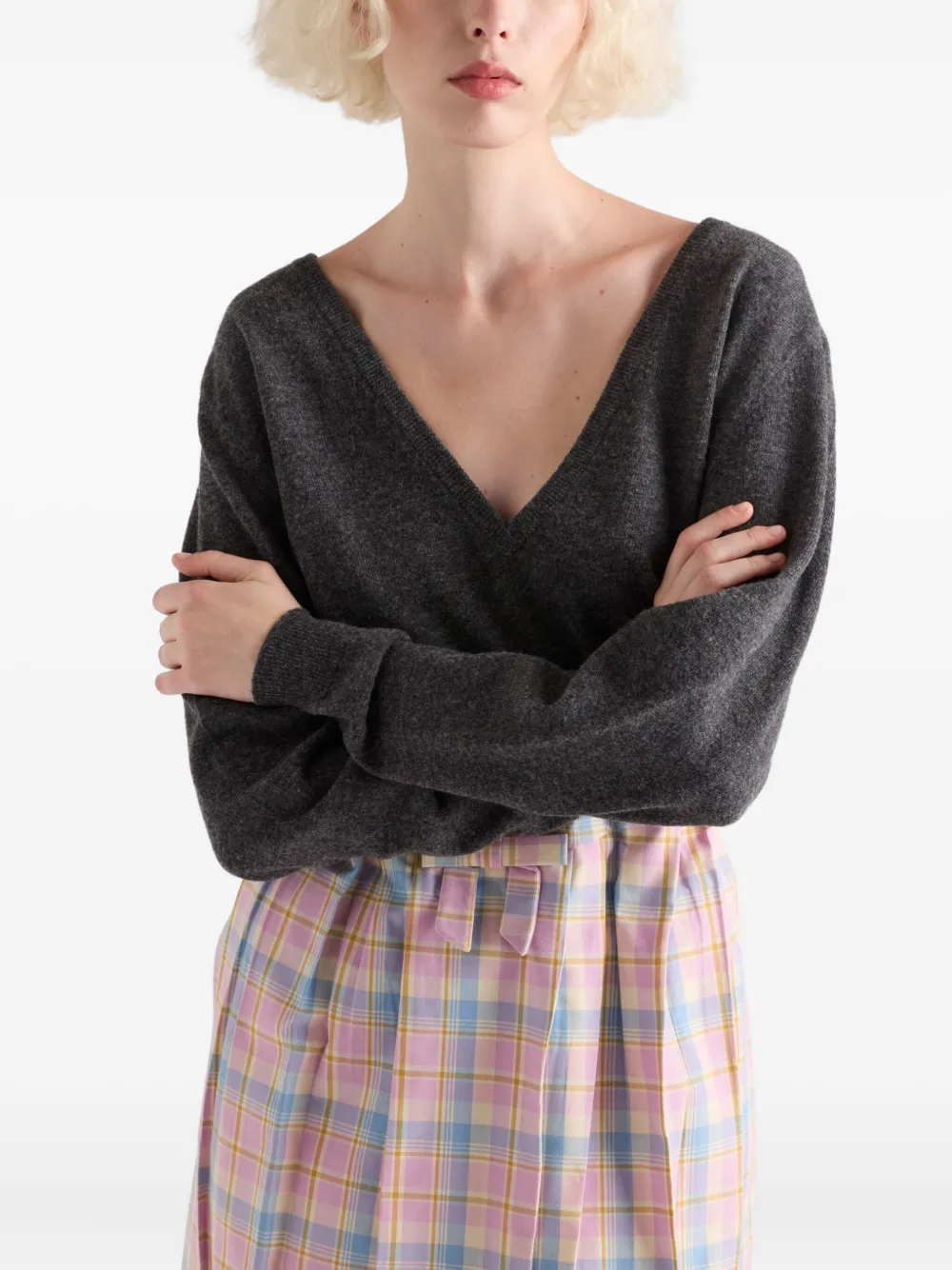 Свитер с V-образным вырезом и рукавами-реглан Prada, серый