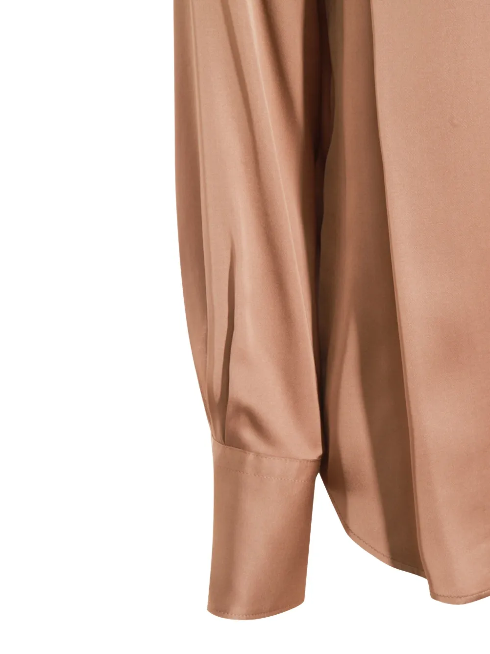 Коричневый сатиновый эффект застежка на пуговицы воротник длинные рукава манжеты на пуговицах