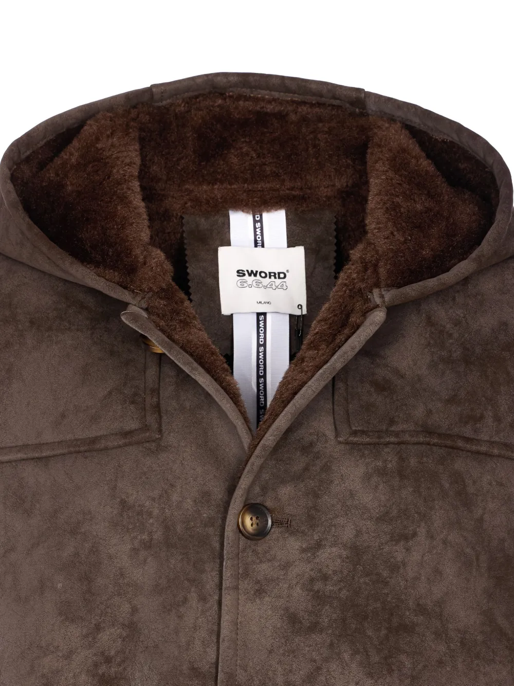 Куртка с капюшоном из искусственной овчины Sword, коричневый