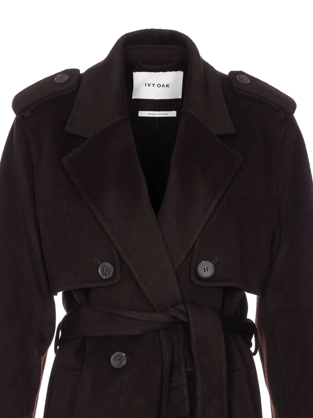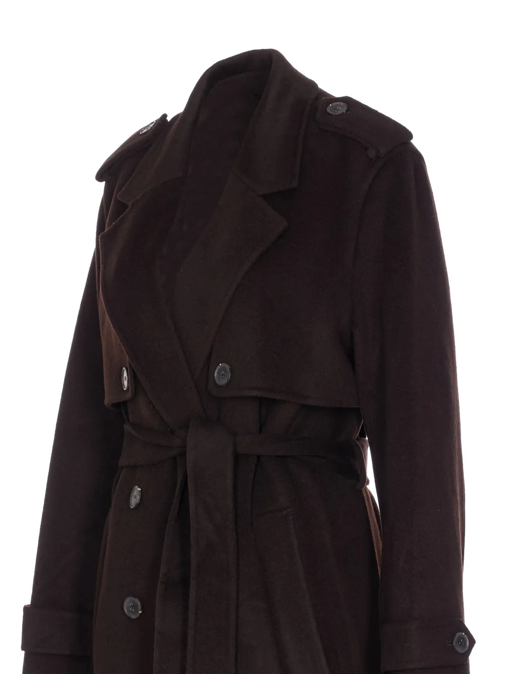 Коричневый двубортная застежка на пуговицы пояс-лента погоны на плечах