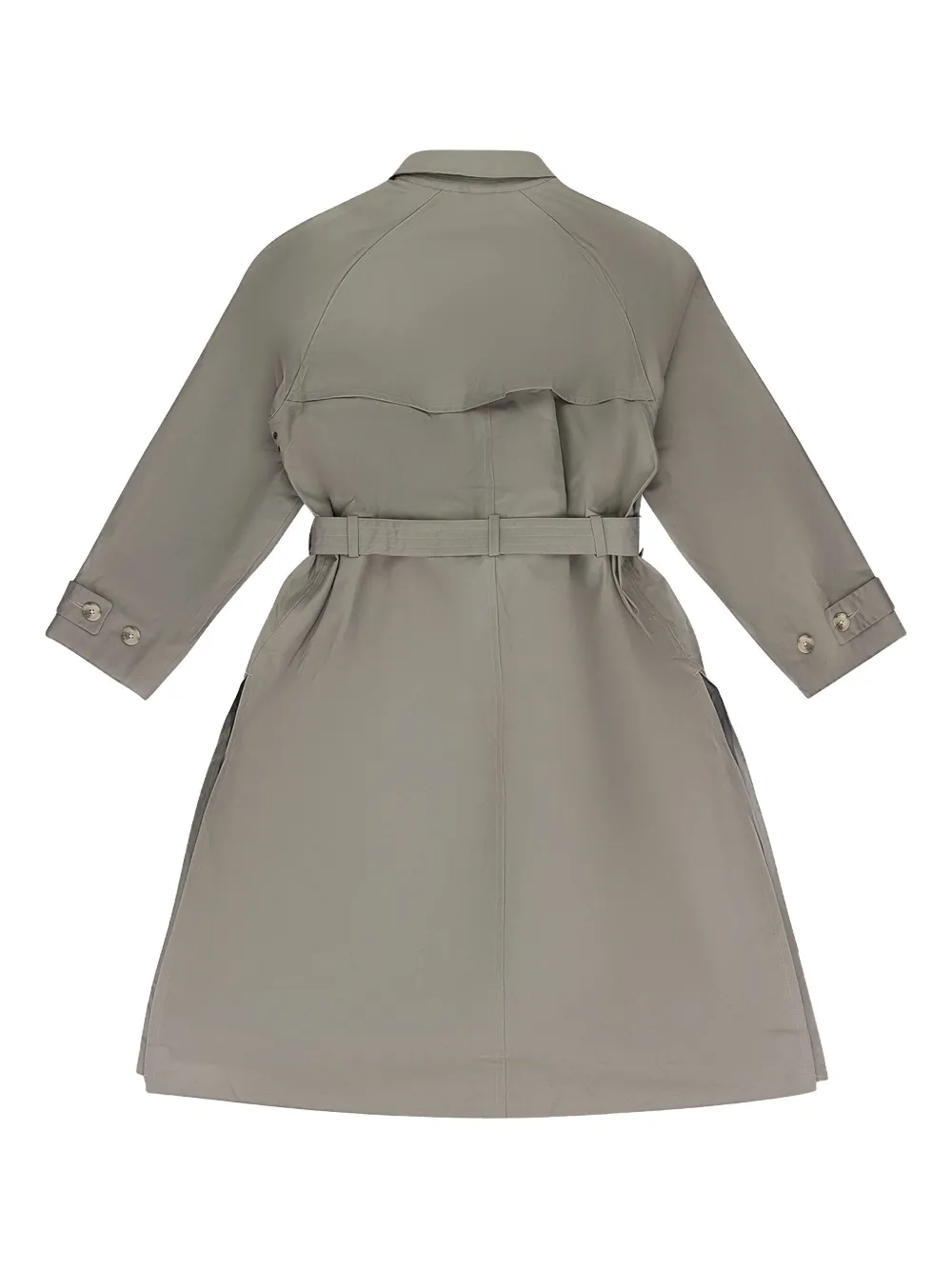 Серый пояс на талии накладные карманы спереди воротник длинные рукава манжеты на пуговицах