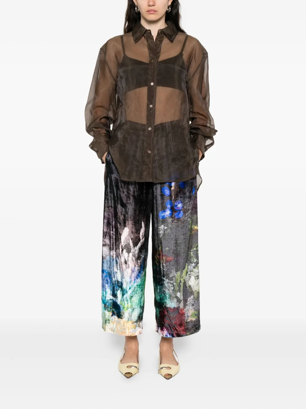 Черный абстрактный принт застежка на кулиску широкие брючины вельветовый эффект