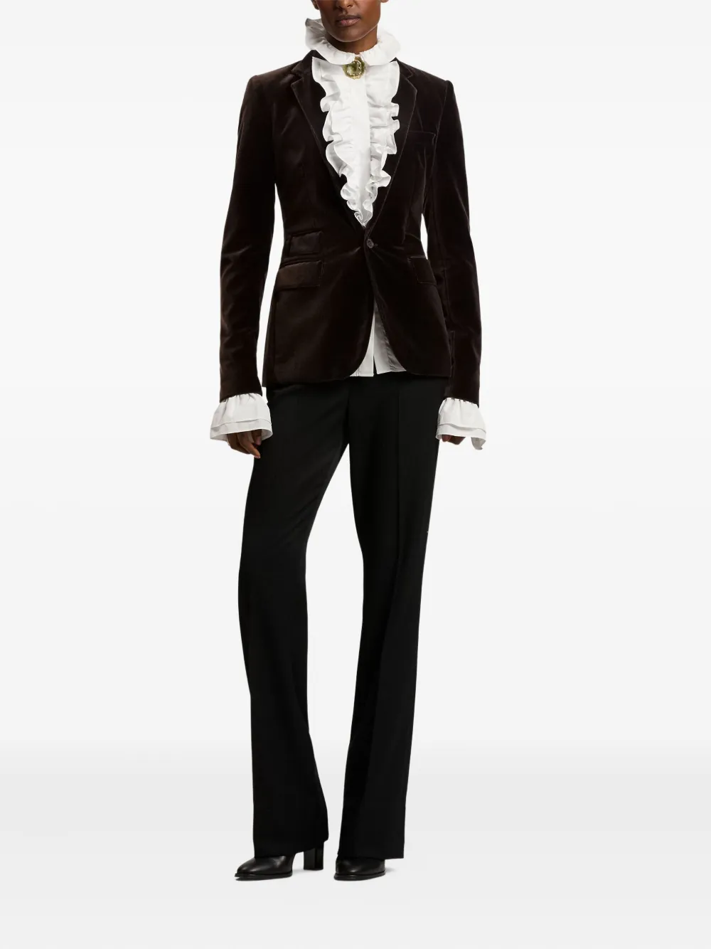 Бархатный блейзер с оборками Ralph Lauren Collection, коричневый