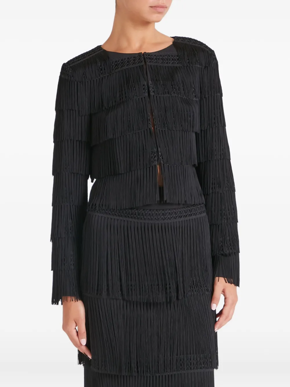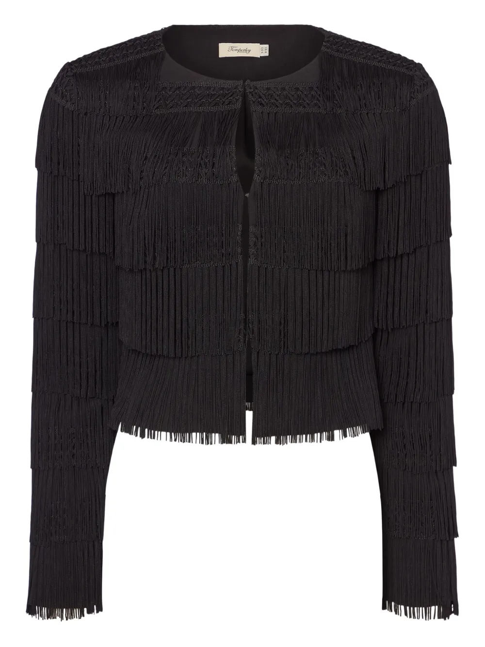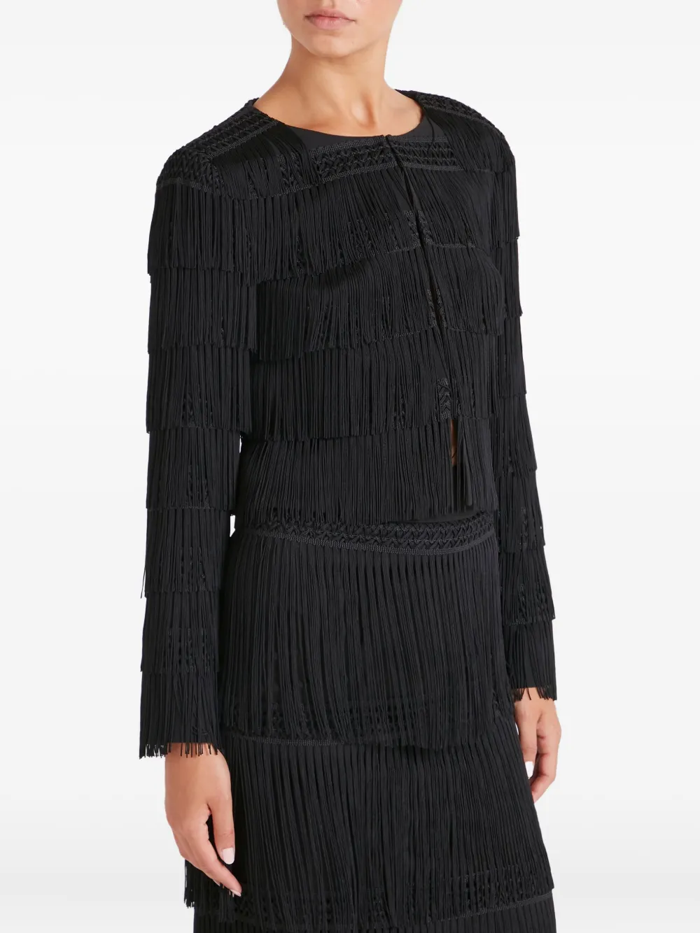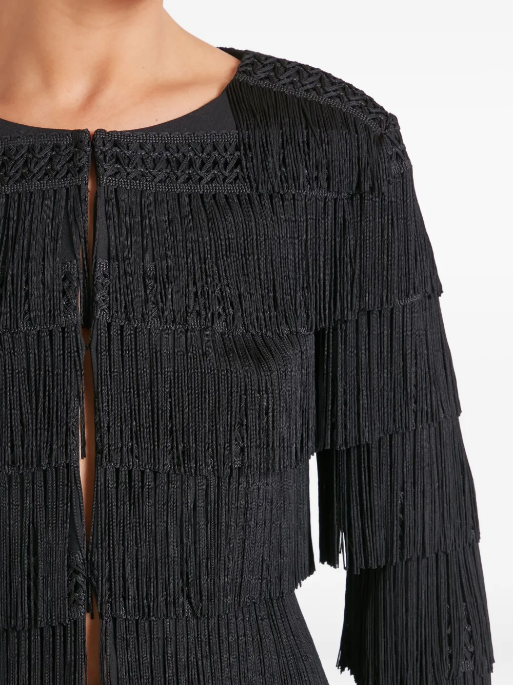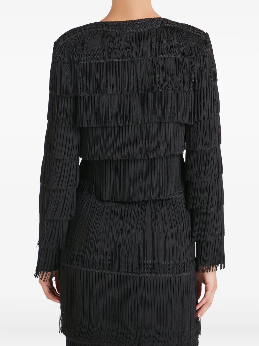 Черный многоуровневый дизайн с бахромой круглый вырез длинные рукава