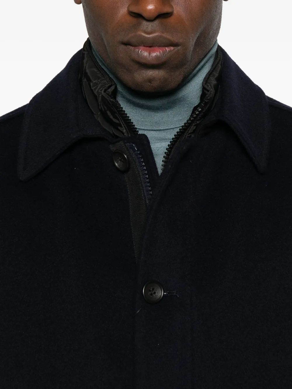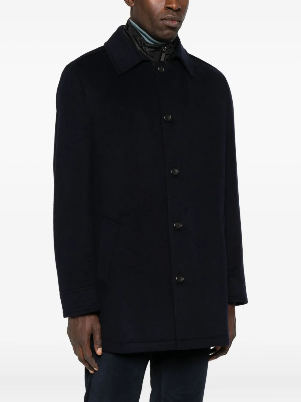 Темно-синий застежка-молния спереди застежка на пуговицы спереди боковые прорезные карманы классический воротник длинные рукава