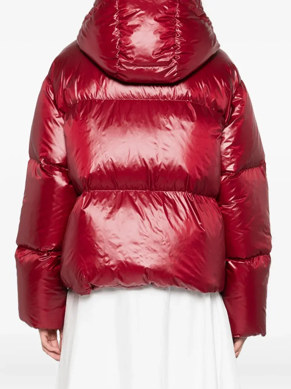 Красный строчка с капюшоном на завязках стеганый дизайн скрытая застежка глянцевая отделка с наполнителем