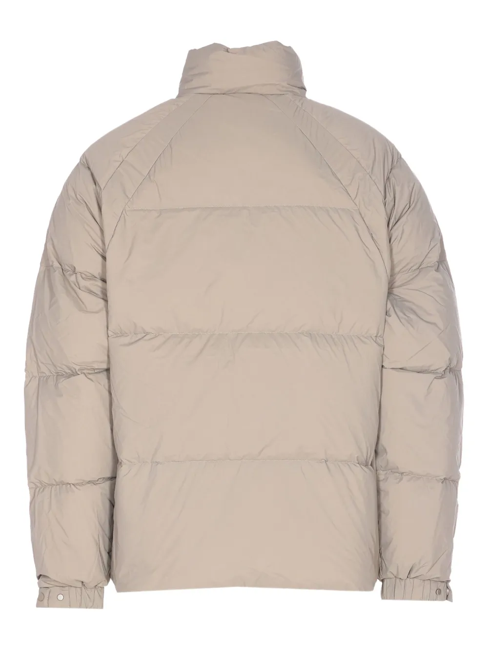 Бежевый высокий воротник застежка на молнии длинные рукава карманы на молнии стеганый дизайн вышитый логотип
