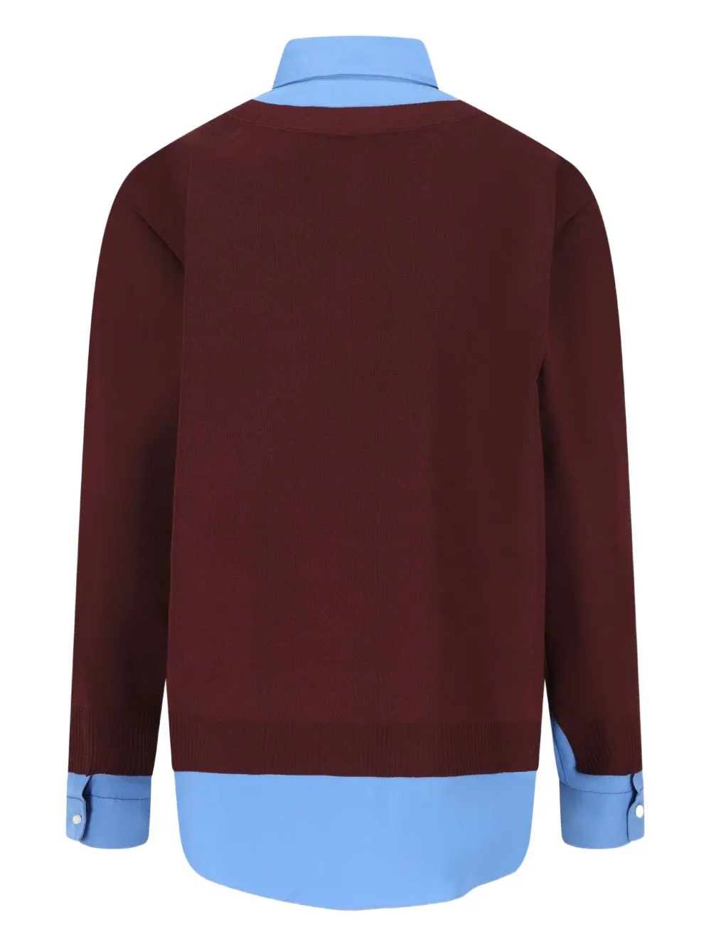 Бордовый свитер с V-образным вырезом, длинными рукавами, застежкой на пуговицах и вышитым логотипом