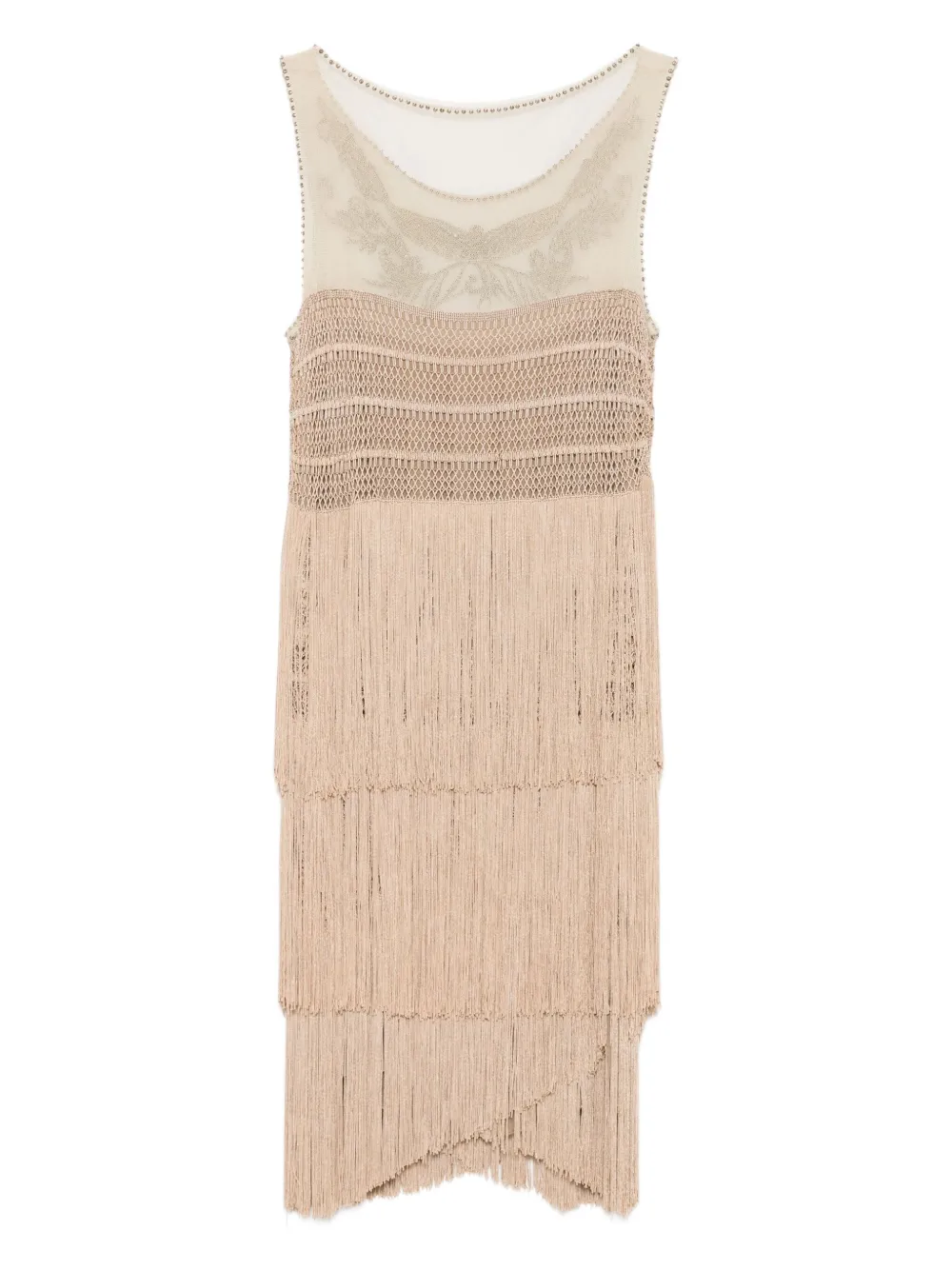 Вышитое платье миди с бахромой Alberta Ferretti, нейтральный