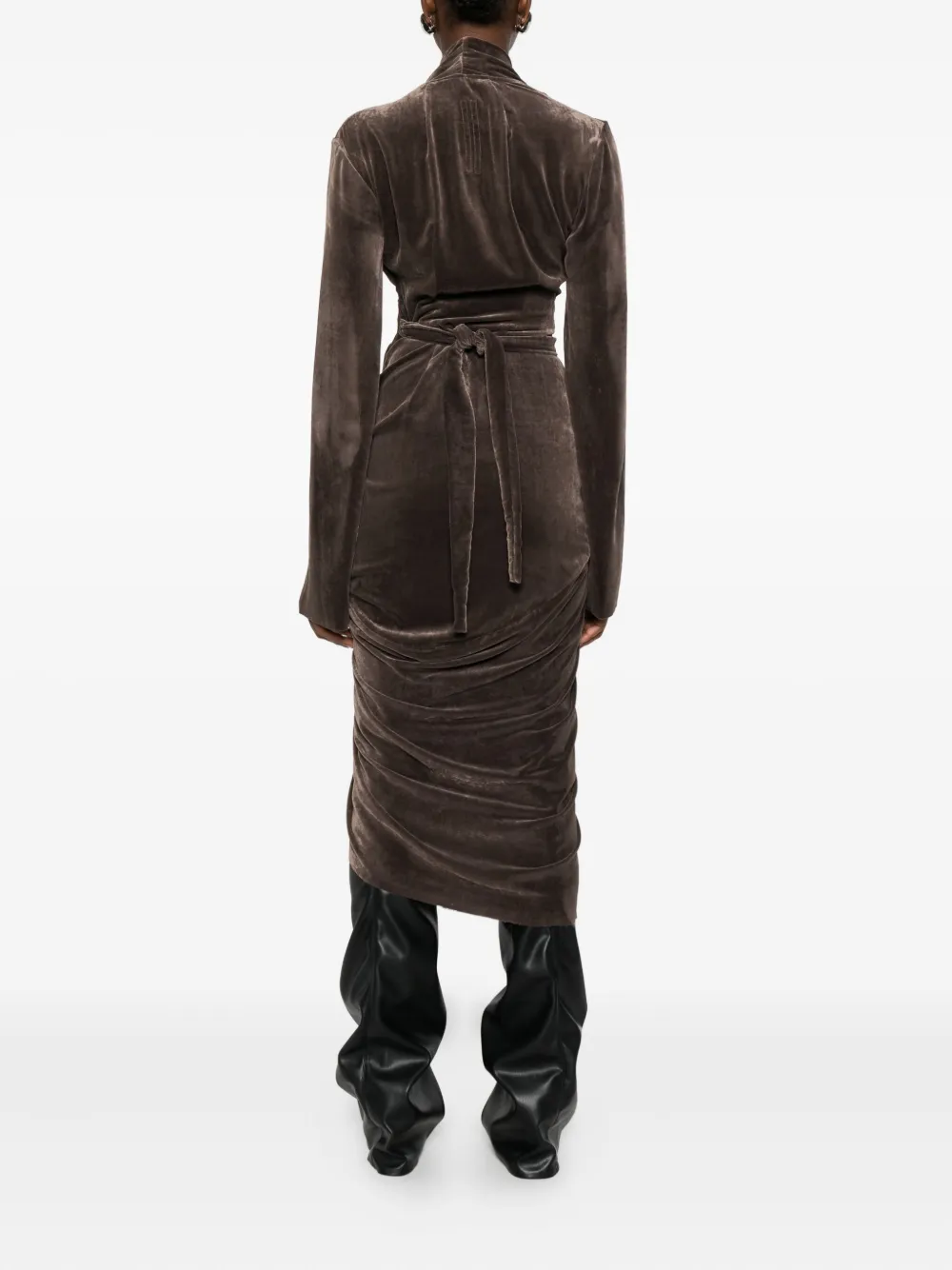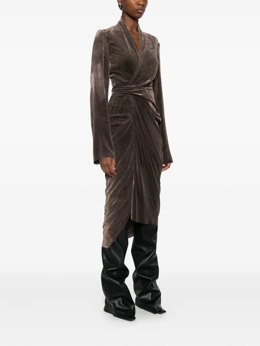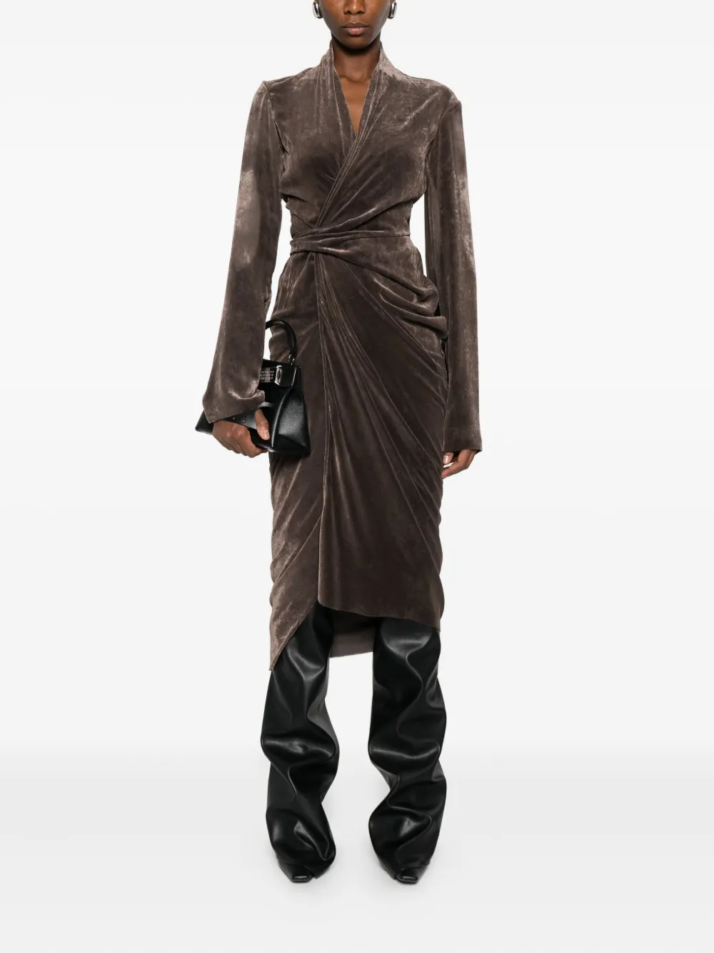 Платье-миди с драпировкой и запахом Rick Owens, коричневый