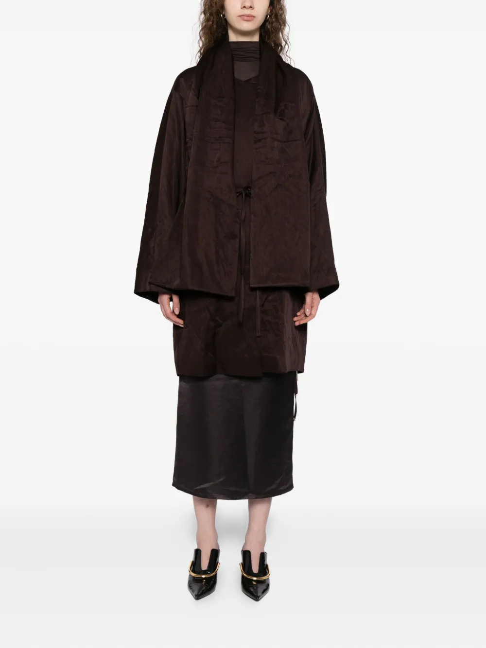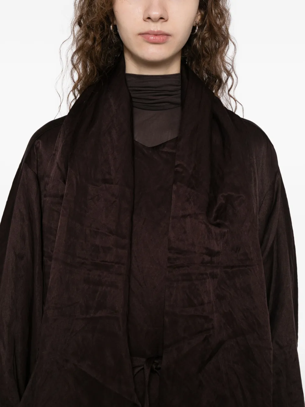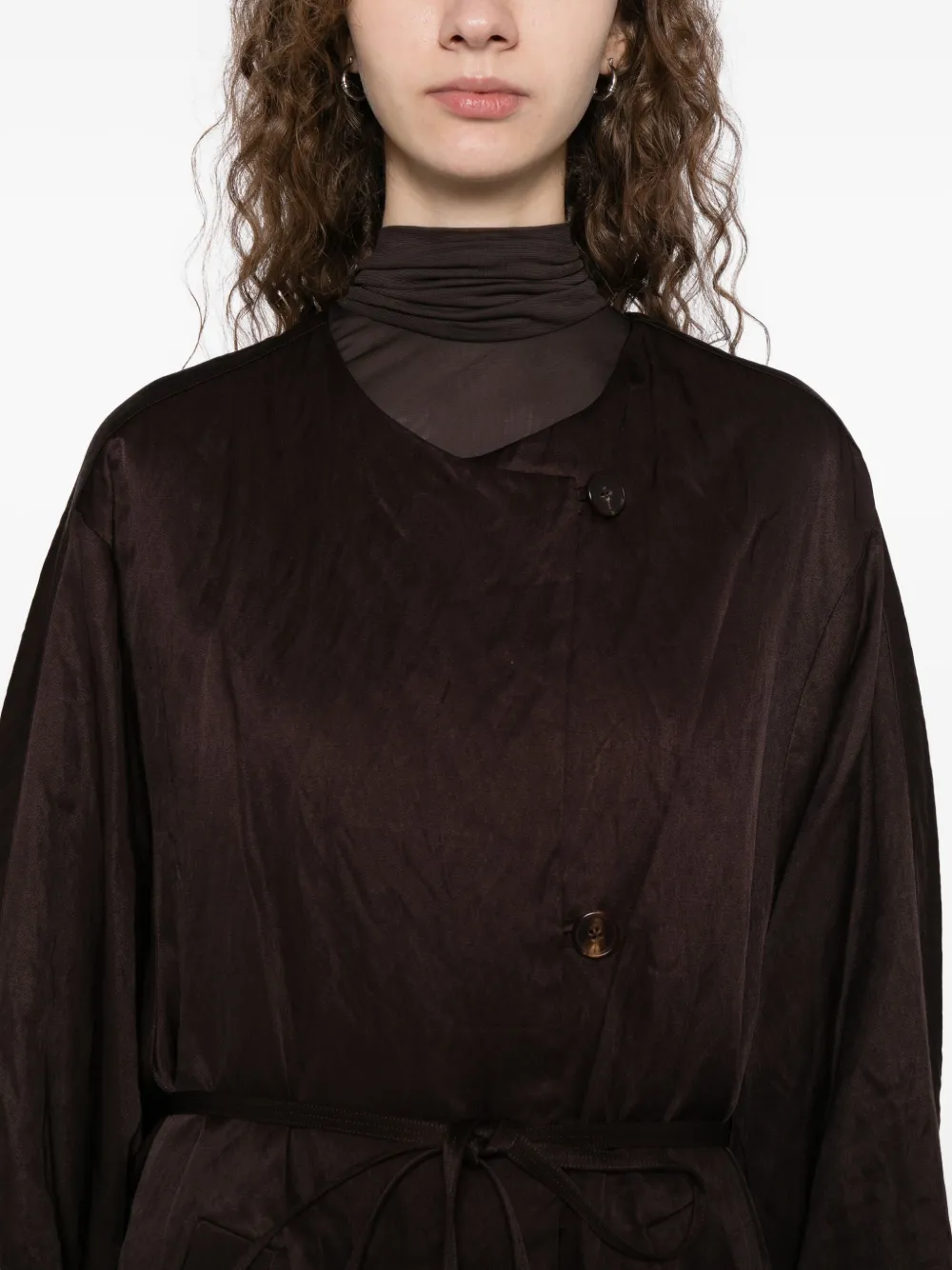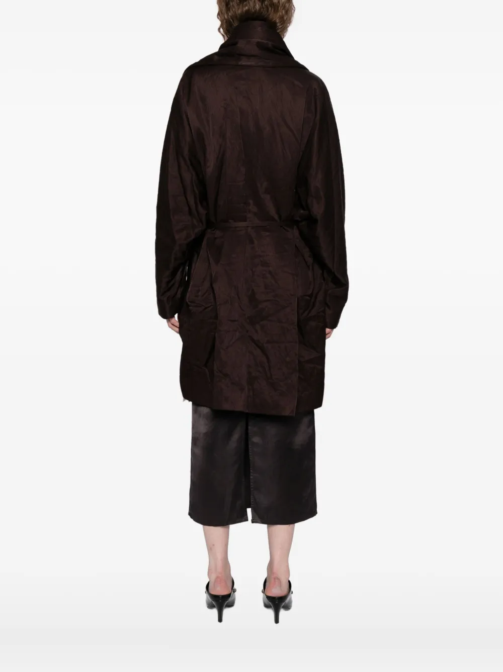 Кедрово-коричневый застежка на пуговицы спереди две боковые прорезные карманы присоединенный шарф съемный регулируемый пояс