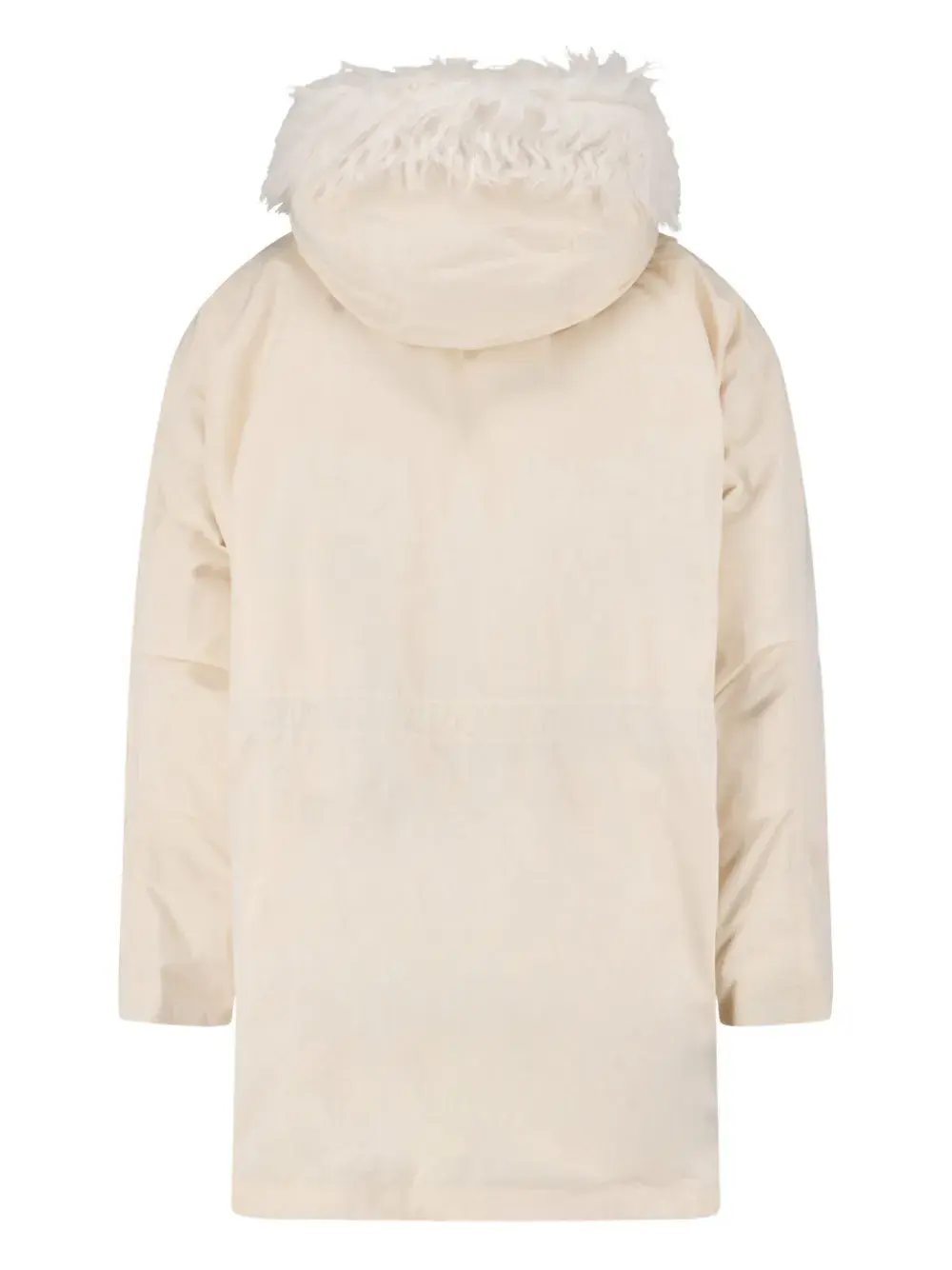 Оттенок «off-white» отделанный капюшон застежка на кнопки накладные карманы с клапанами прямой подол