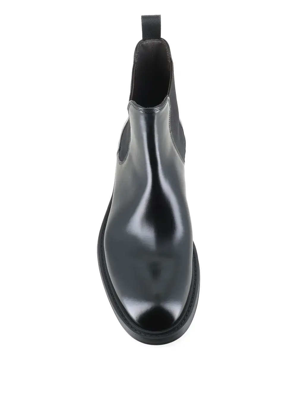 Черная телячья кожа эластичные боковые вставки круглый нос плоская подошва