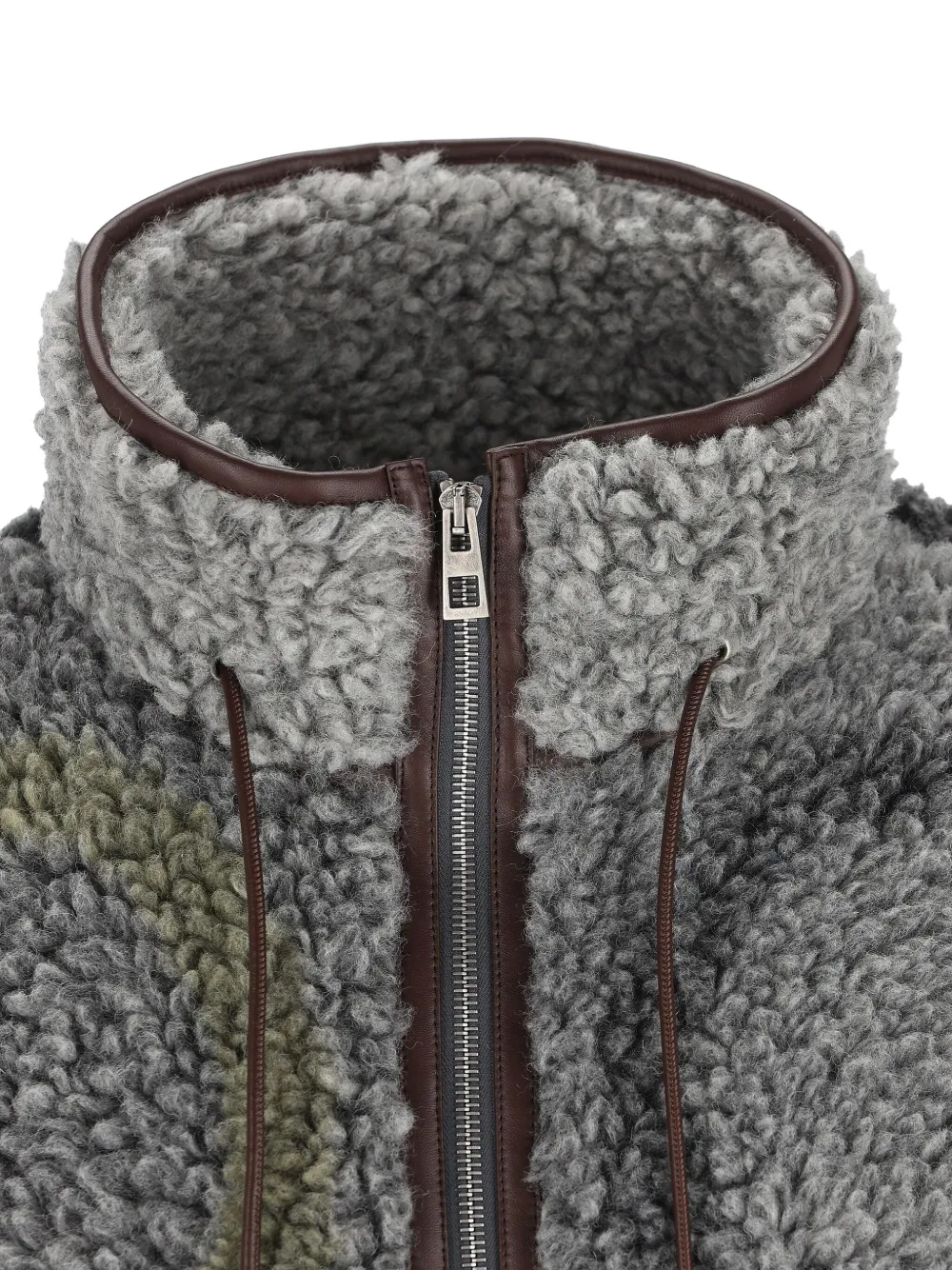 Серый текстура флиса кожаная отделка высокий воротник застежка-молния спереди боковые карманы на молнии без рукавов фирменный мотив Anagram