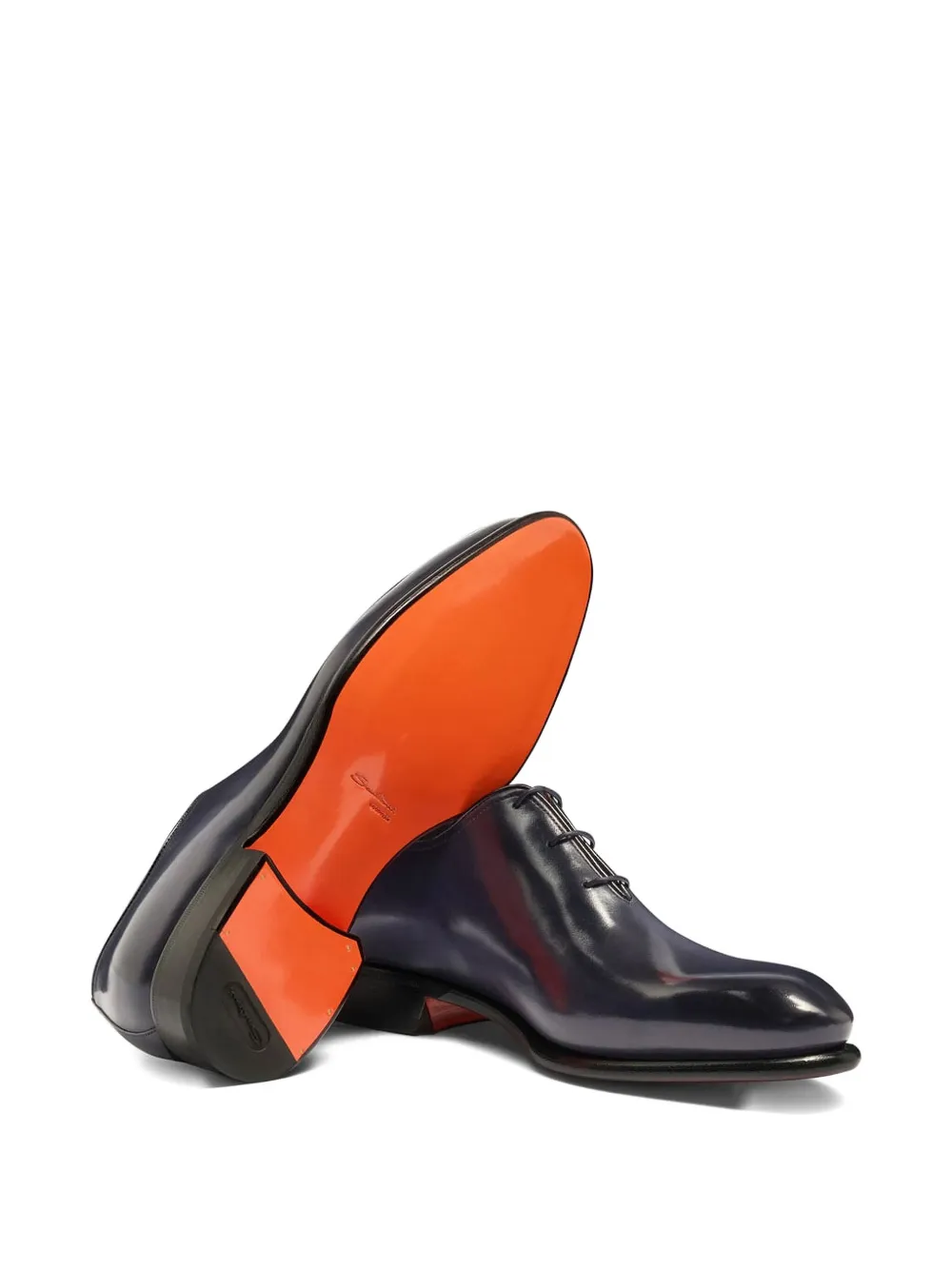 Темно-синяя телячья кожа, гладкий мыс, кожаная подошва, оранжевая кожаная стелька, шнуровка