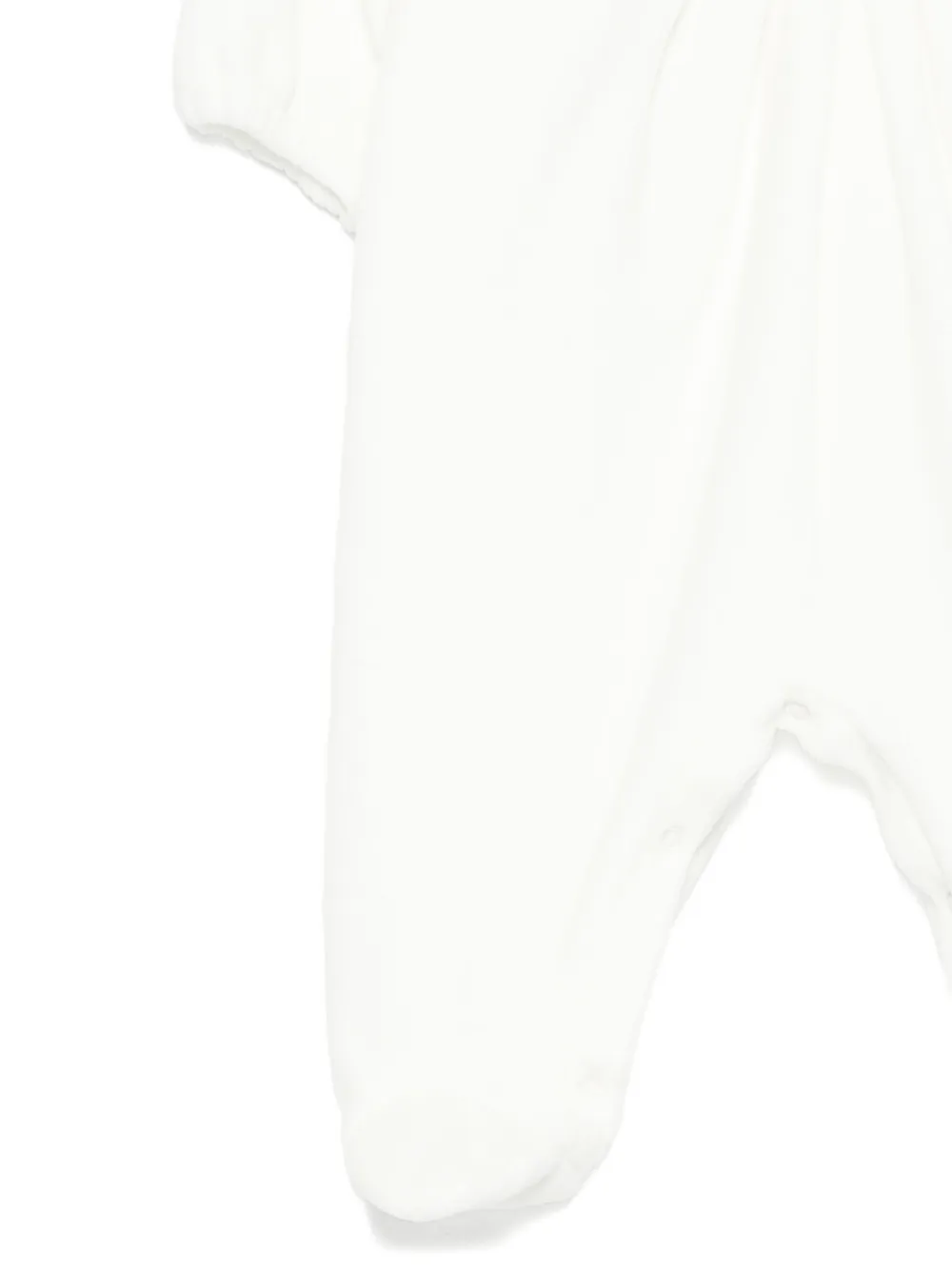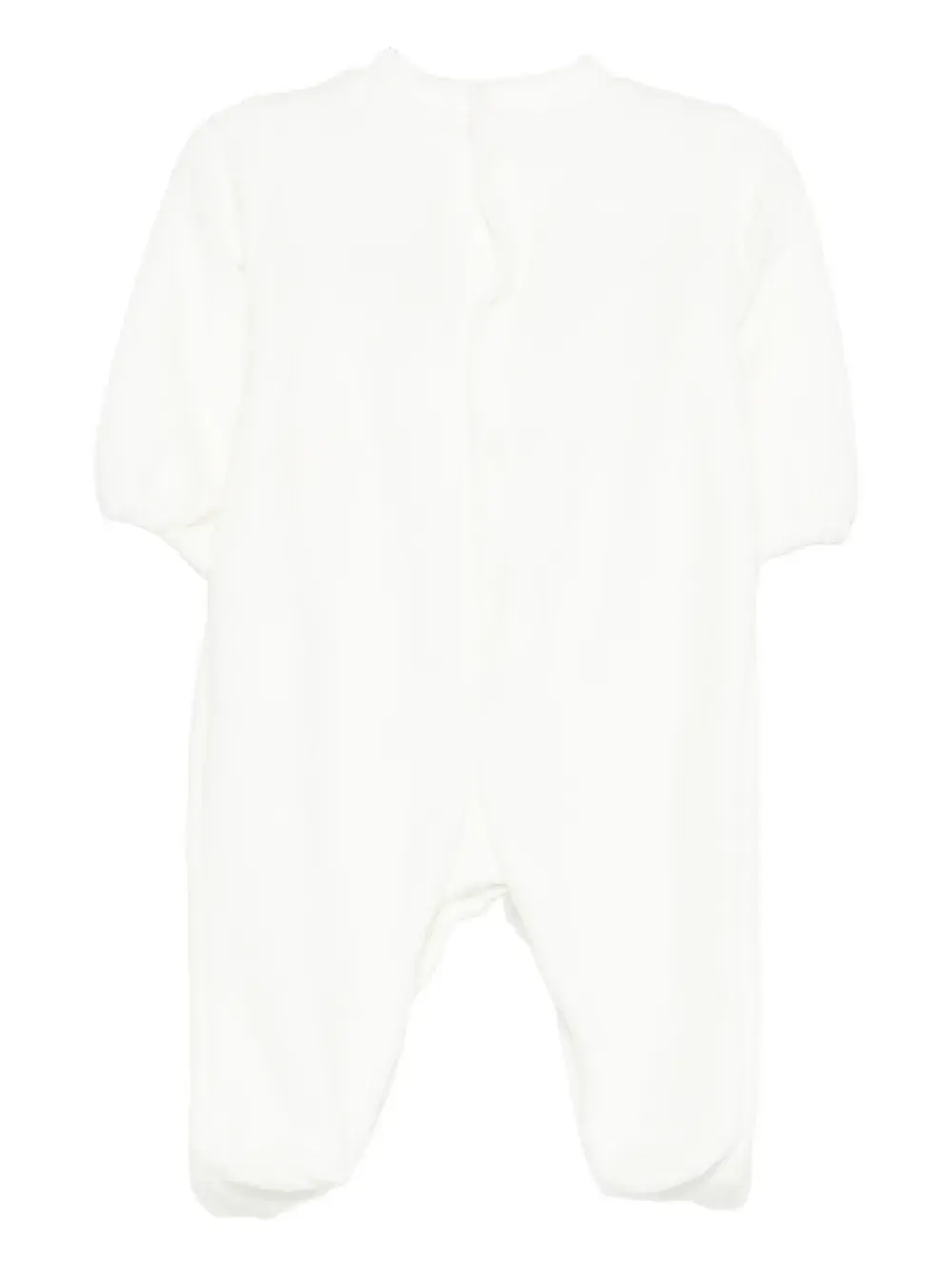 Белый оборчатая отделка длинные рукава круглый вырез застежка на пуговицах сзади