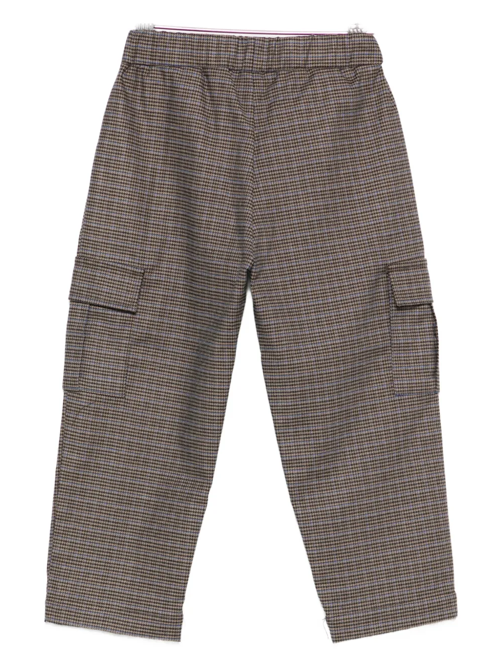 Коричневый клетчатый узор эластичный пояс застежка на шнурке боковые карманы карго детали с логотипом