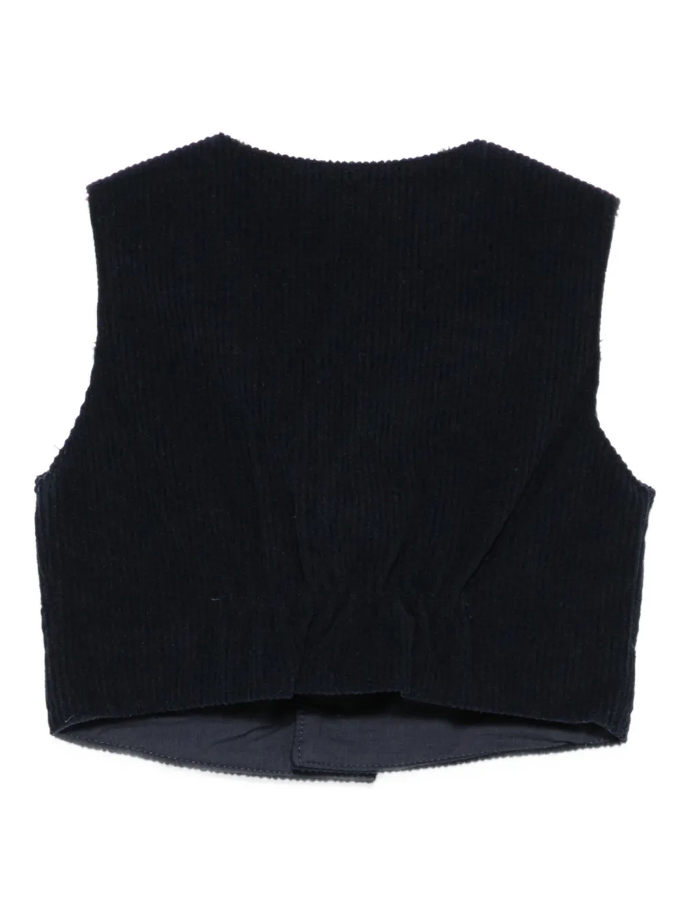 Темно-синий вельветовая фактура V-образный вырез застежка на пуговицы спереди без рукавов