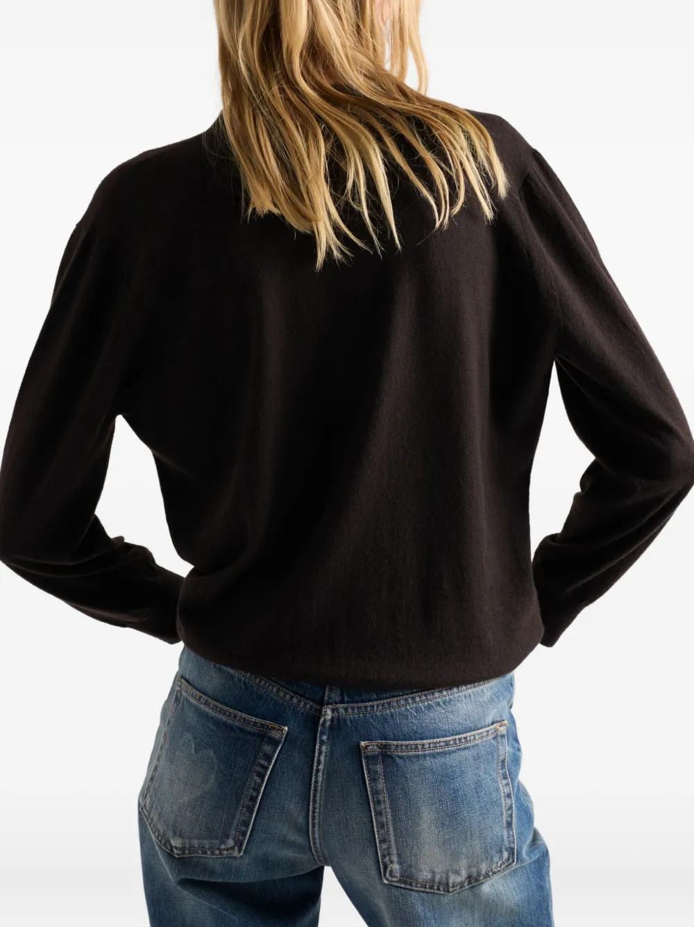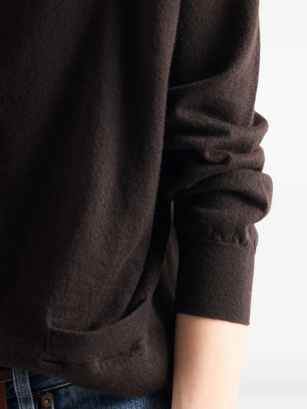 Коричневый кашемир V-образный вырез застежка на пуговицы длинные рукава ребристый низ ребристые манжеты
