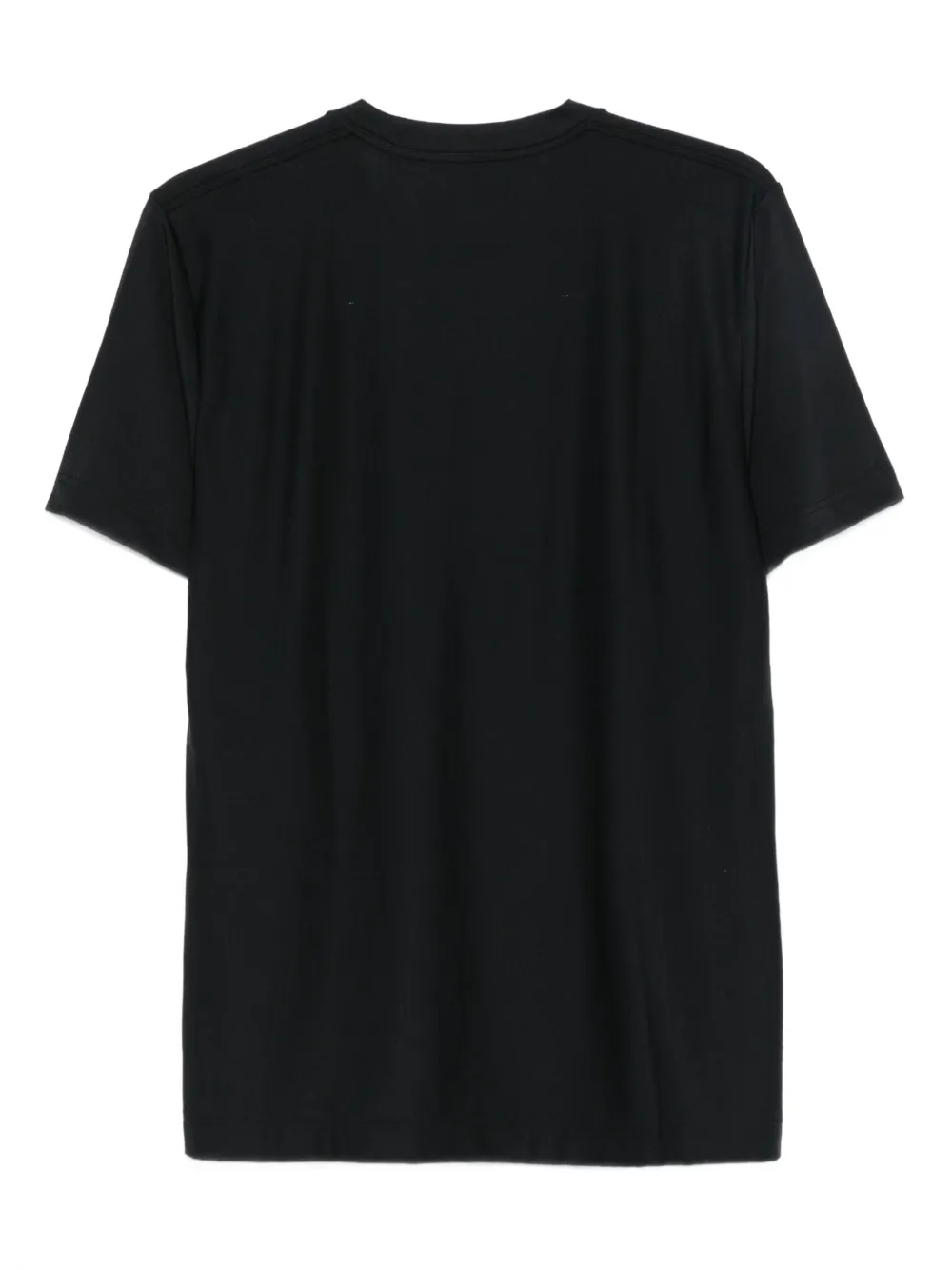 Черный круглый вырез короткие рукава логотип на груди прямой подол