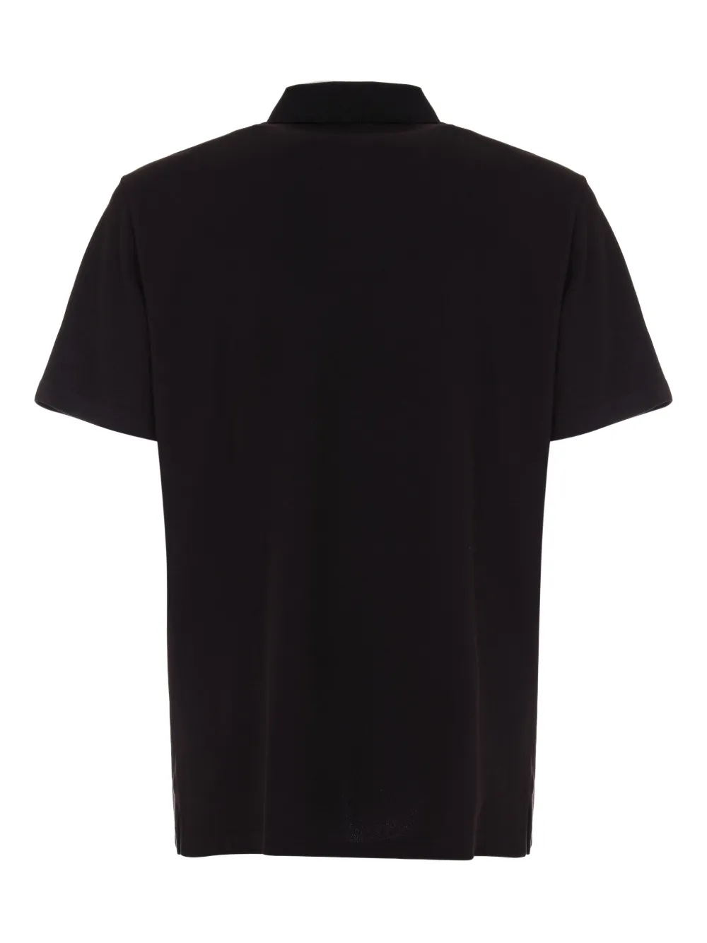 Черная футболка с короткими рукавами, планкой на пуговицах и круглым эмблемой