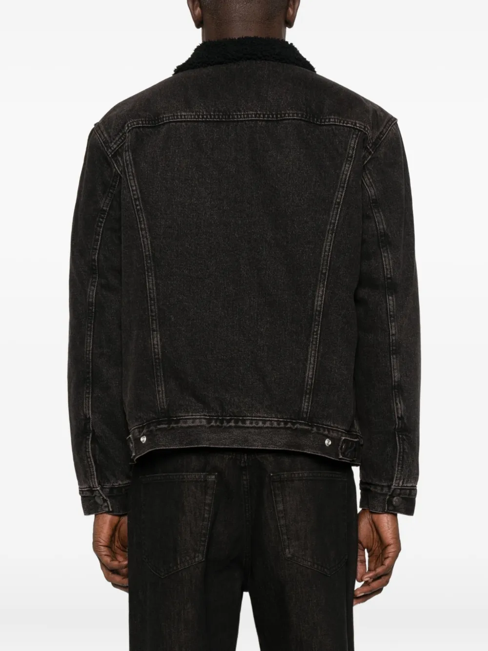 Черный джинсовая ткань воротник из шерпы застежка на пуговицы нагрудные карманы