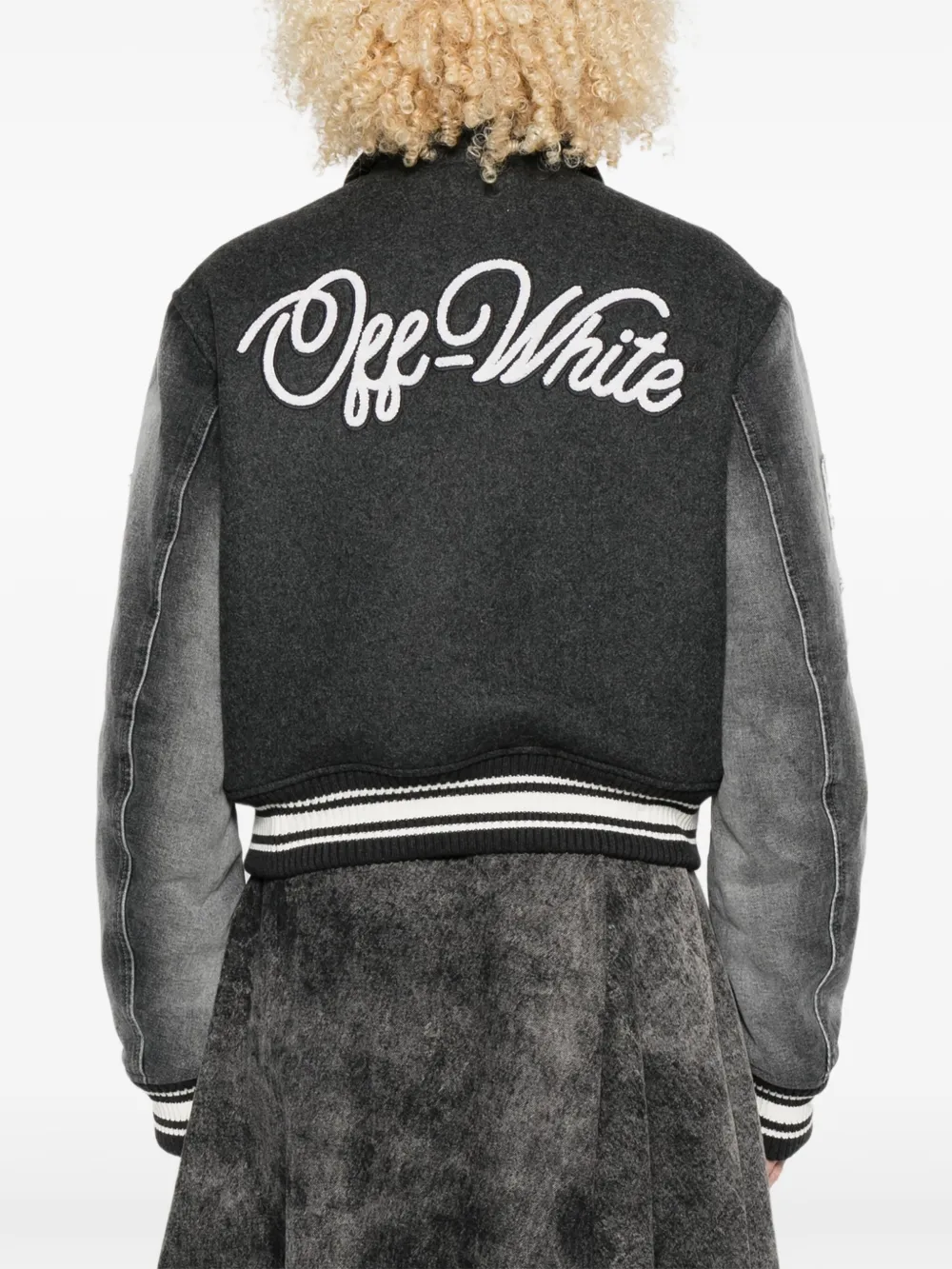 Бомбер в стиле университетской куртки OFF-WHITE, черный