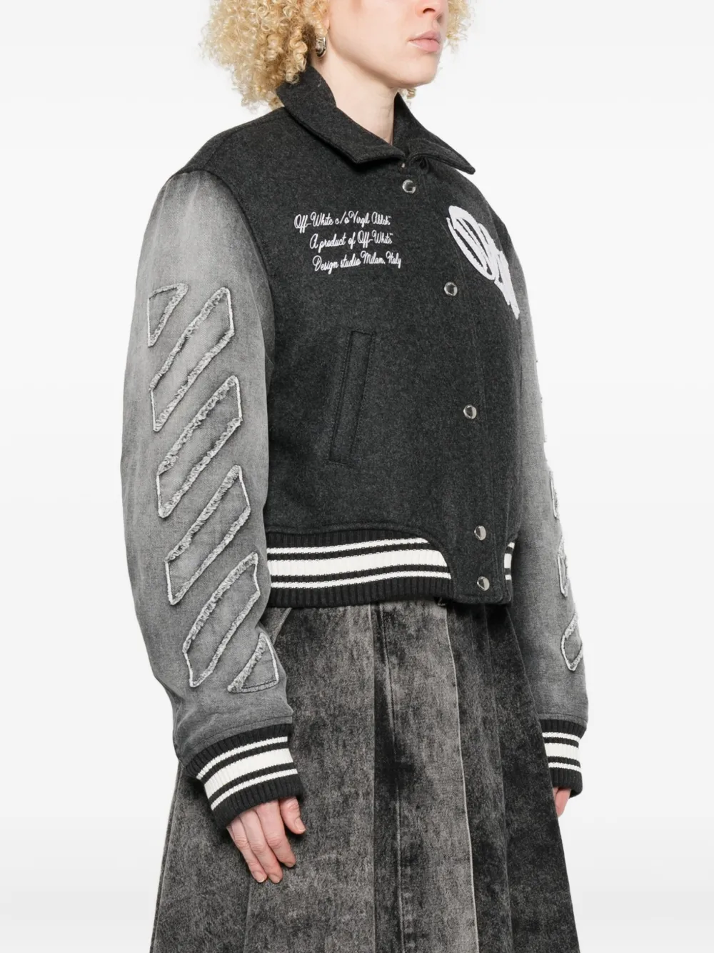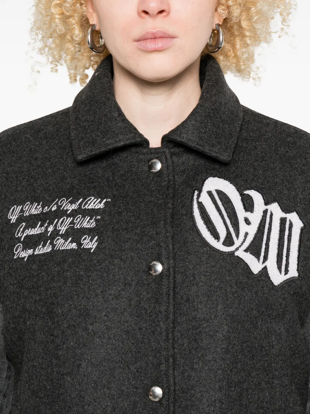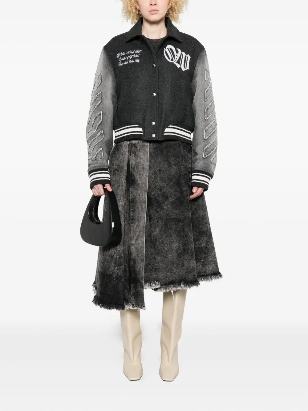 Бомбер в стиле университетской куртки OFF-WHITE, черный 115 347₽