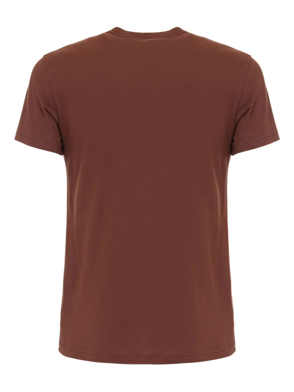 Коричневая футболка с короткими рукавами, круглым вырезом и нашивкой с логотипом