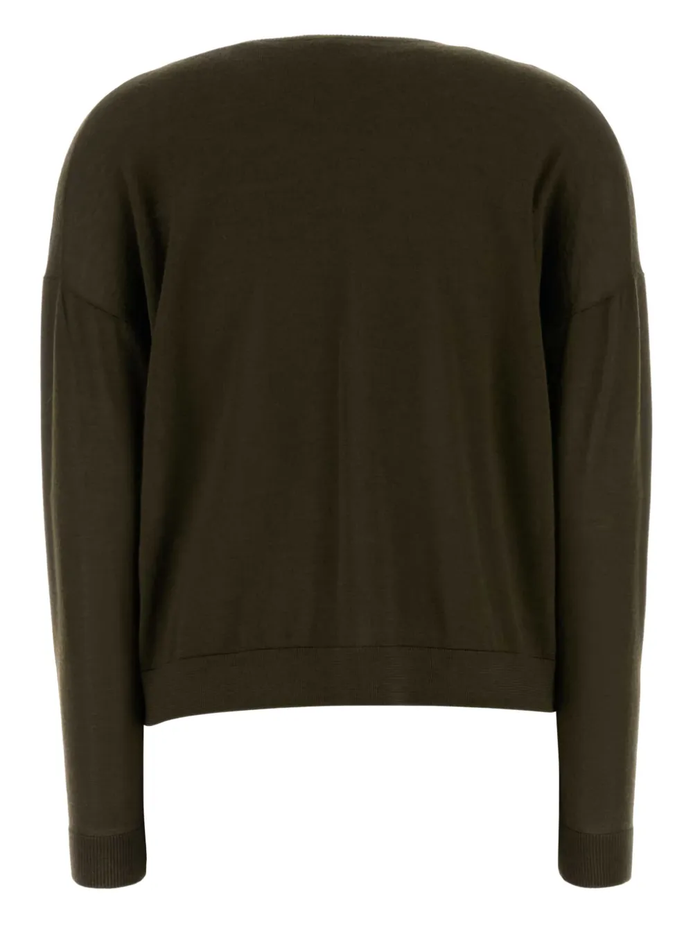 Оливково-зеленый кешемир V-образный вырез длинные рукава