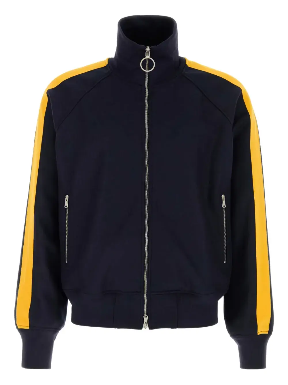 Синий застежка-молния высокий воротник желтые вставки длинные рукава ребристый низ ребристые манжеты