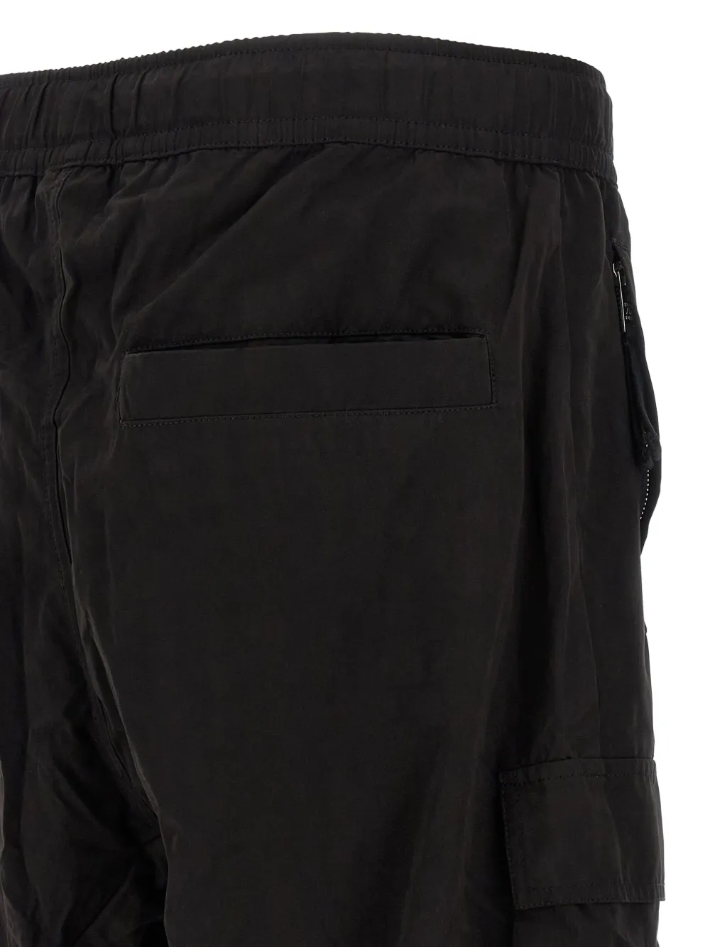 Черные брюки с эластичным поясом, накладными карманами карго и застежкой-утяжкой
