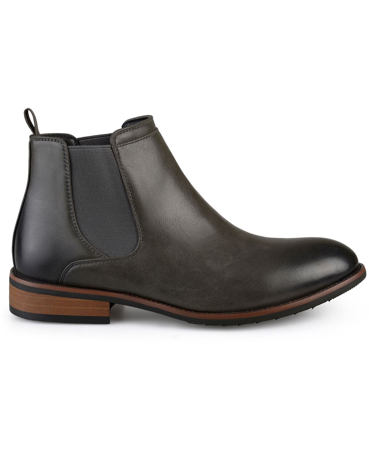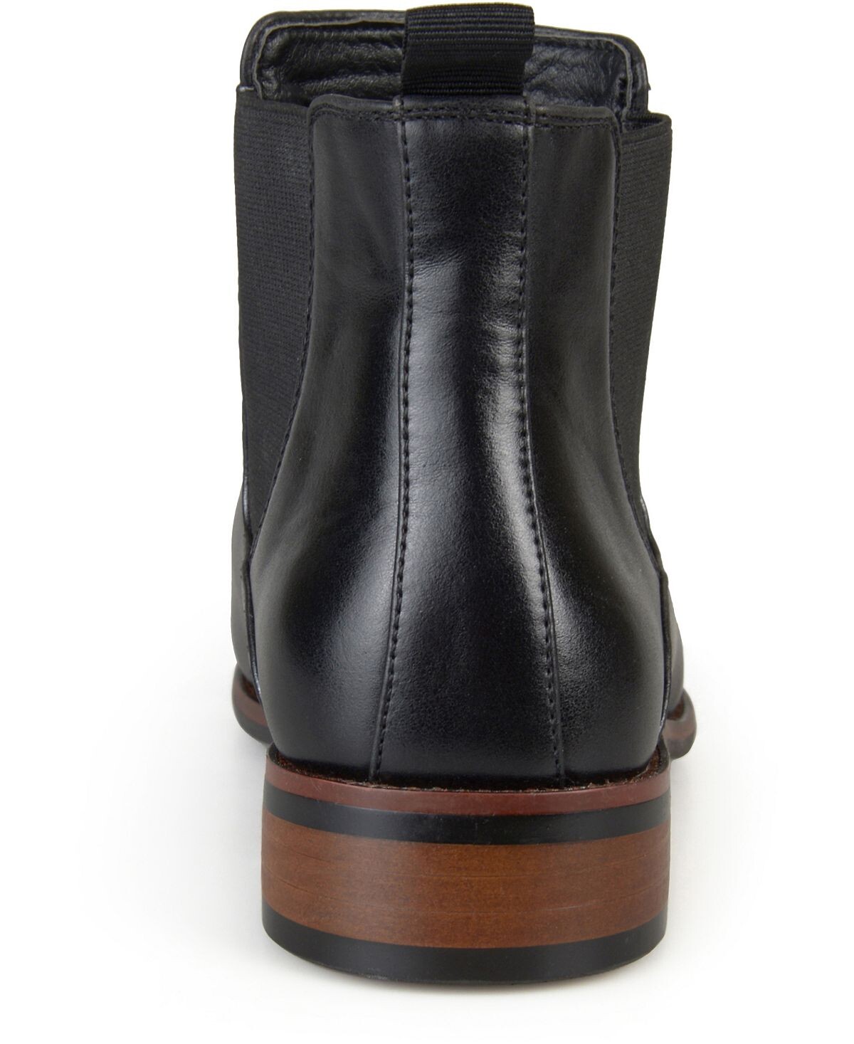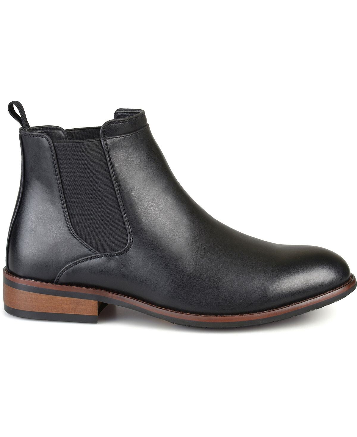 Высокие классические ботинки Chelsea от Vance Co. имеют верх из высококачественной искусственной кожи, доходящий до лодыжек, с тонкой строчкой по краям, окаймляющей эластичные боковые вставки. Туфли на каблуке и подошва из искусственного дерева из красного дерева завершают образ.