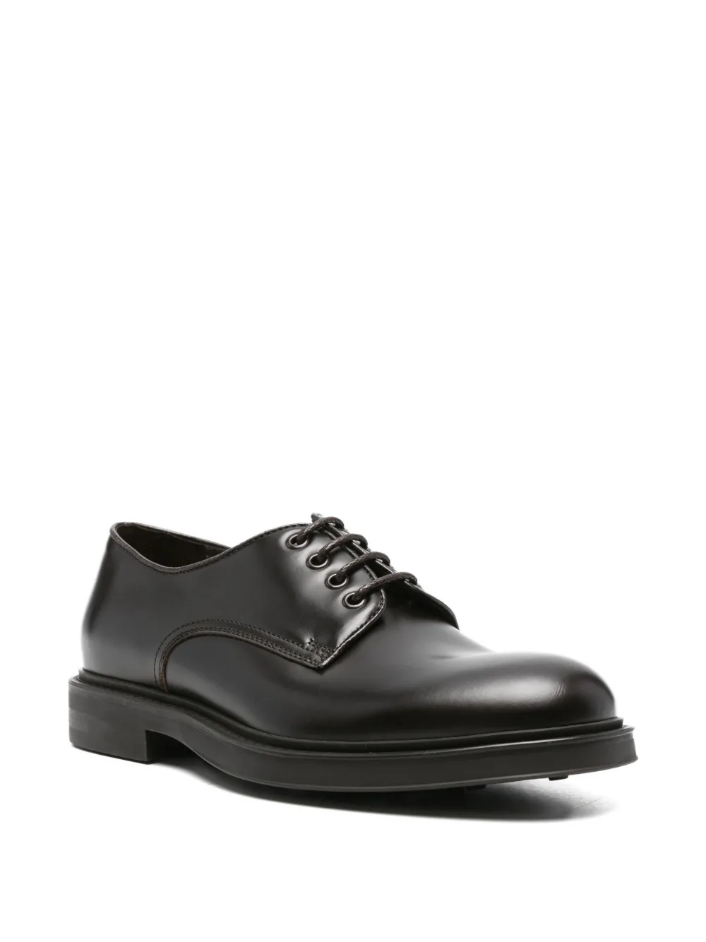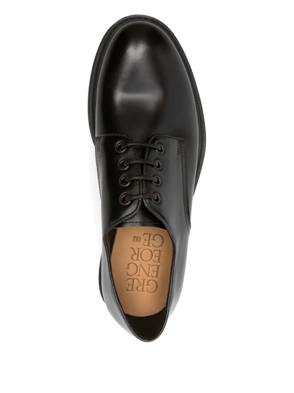 Темно-коричневый кожа круглый нос шнуровка плоская подошва