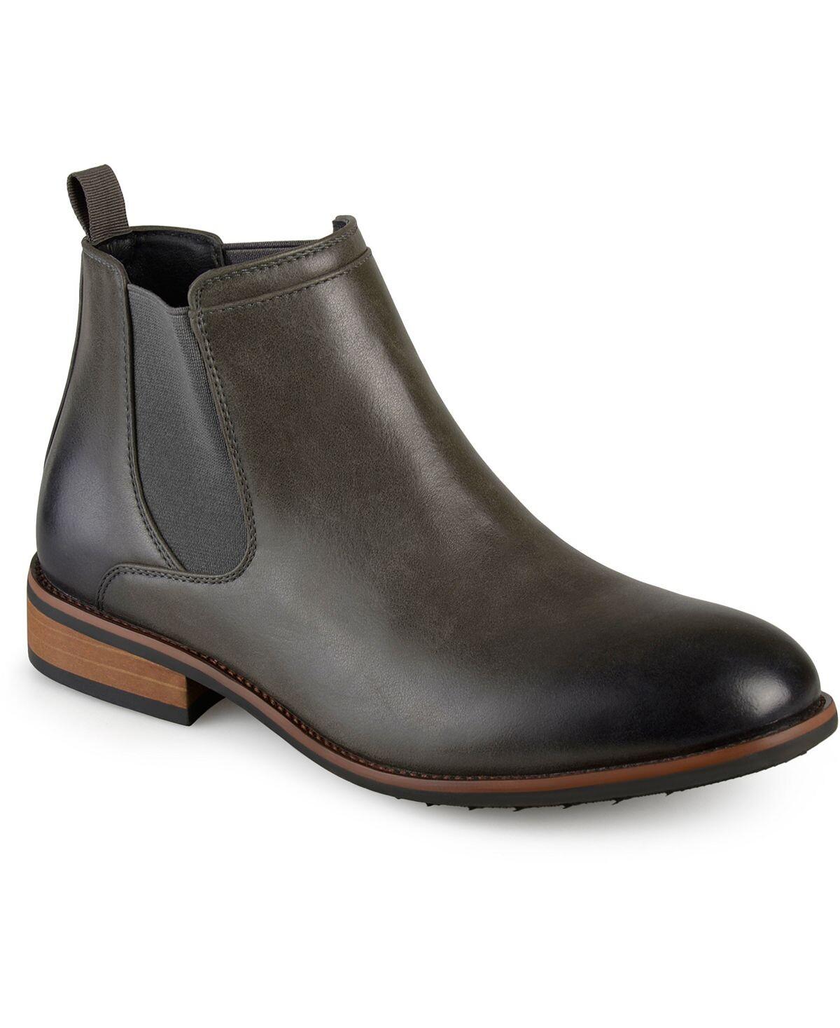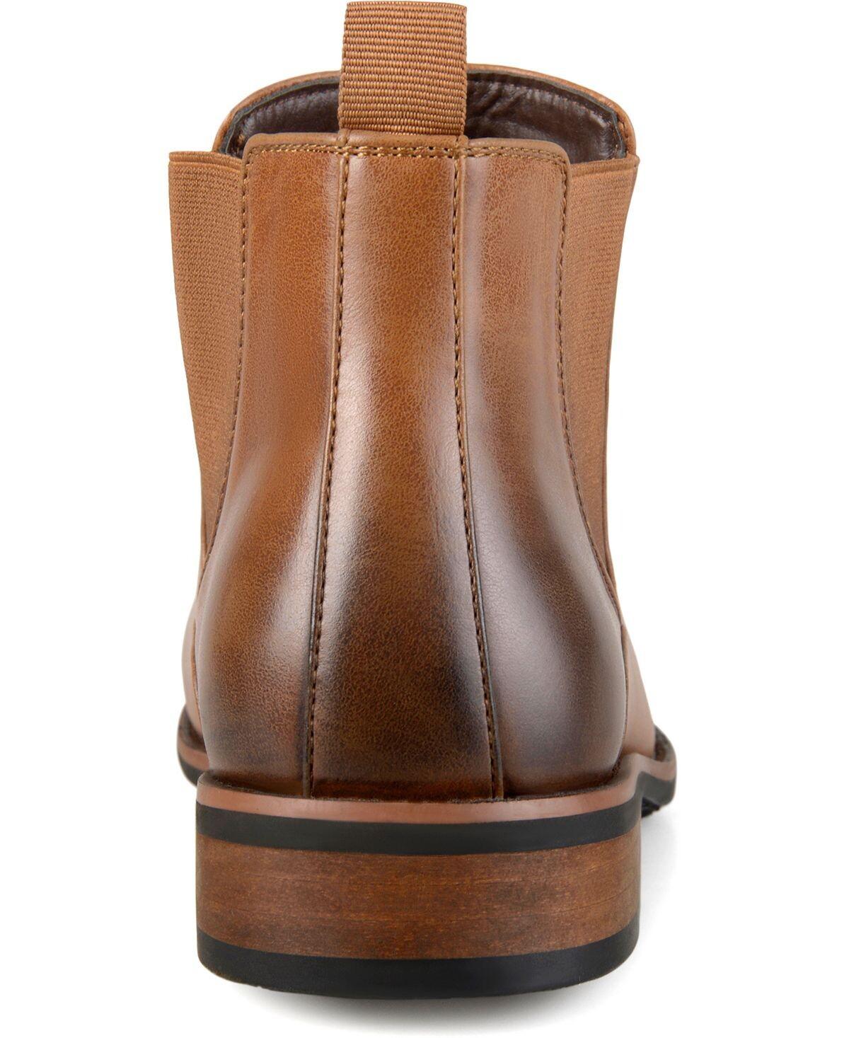 Высокие классические ботинки Chelsea от Vance Co. имеют верх из высококачественной искусственной кожи, доходящий до лодыжек, с тонкой строчкой по краям, окаймляющей эластичные боковые вставки. Туфли на каблуке и подошва из искусственного дерева из красного дерева завершают образ.