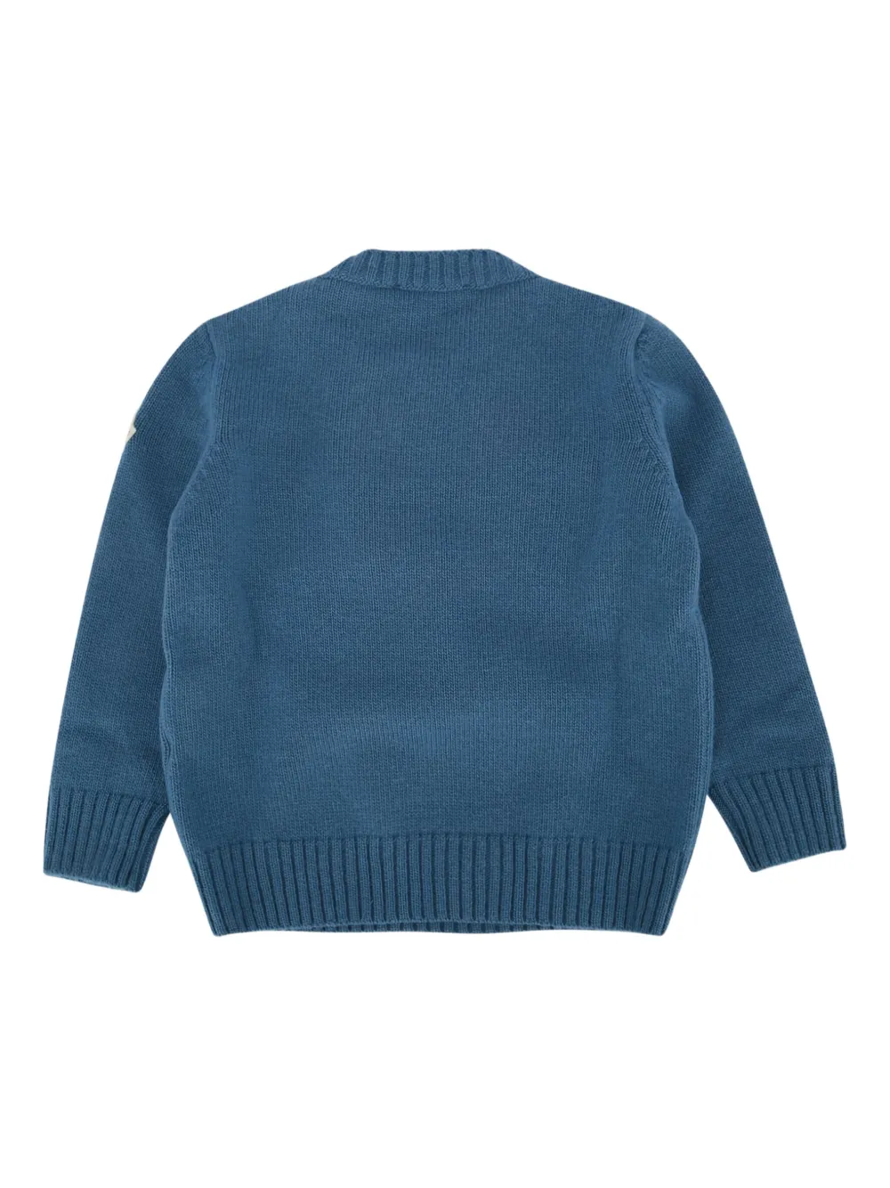 Вышитый свитер с круглым вырезом Moncler Enfant, синий