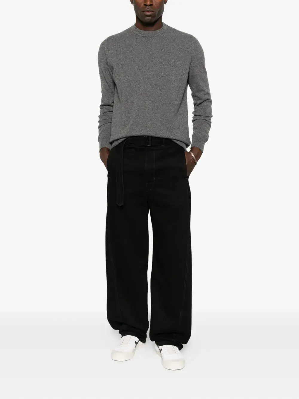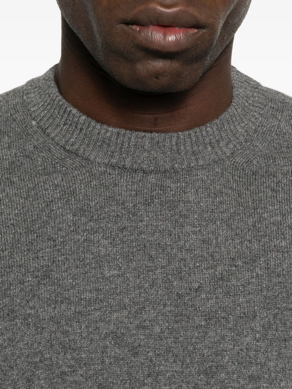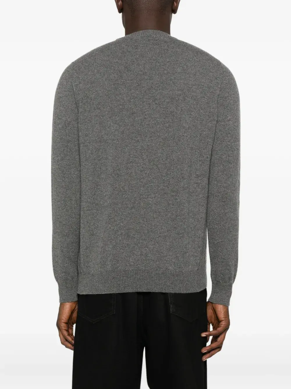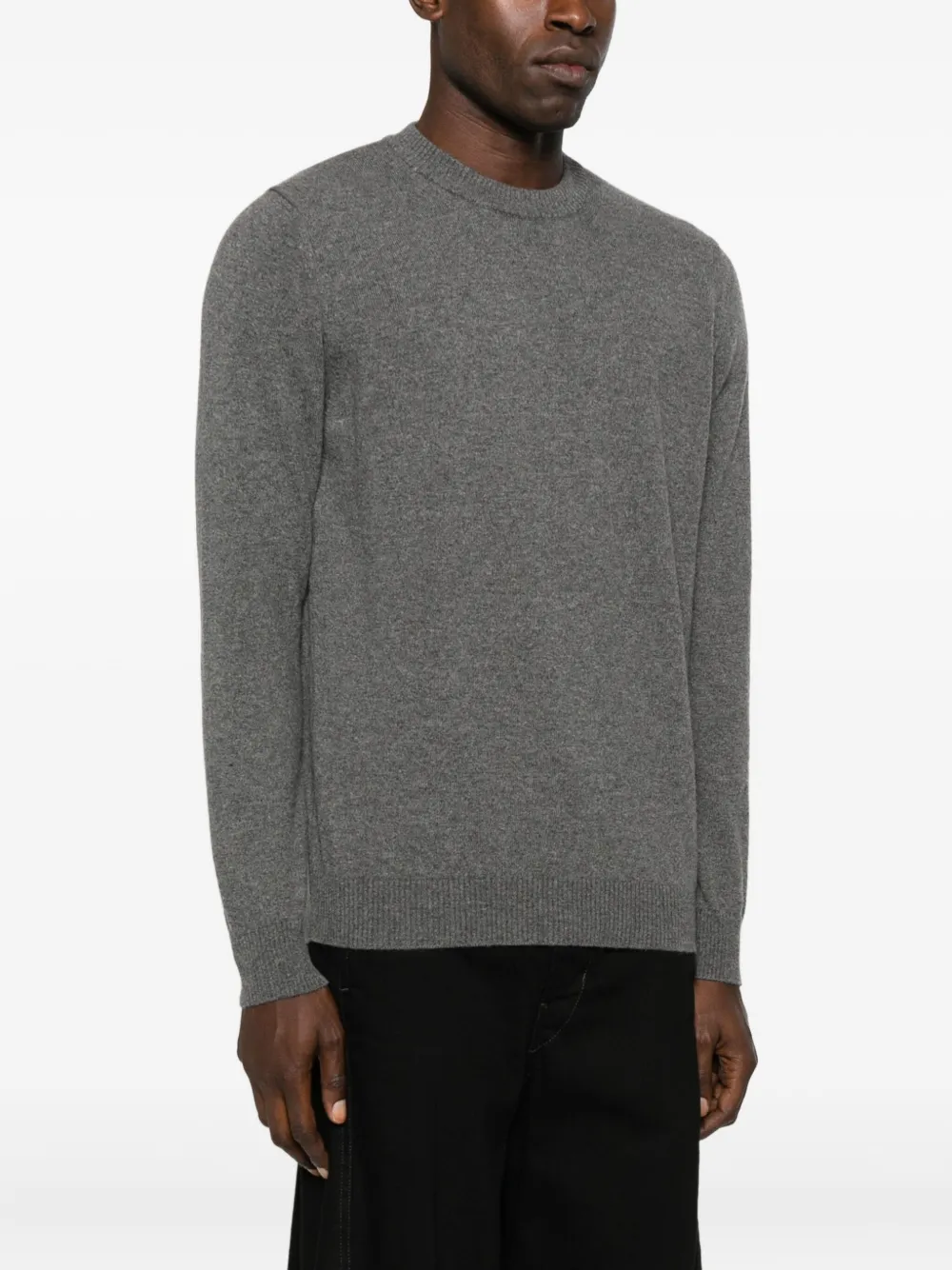 Серый шерсть круглый вырез длинные рукава вязаные манжеты и низ