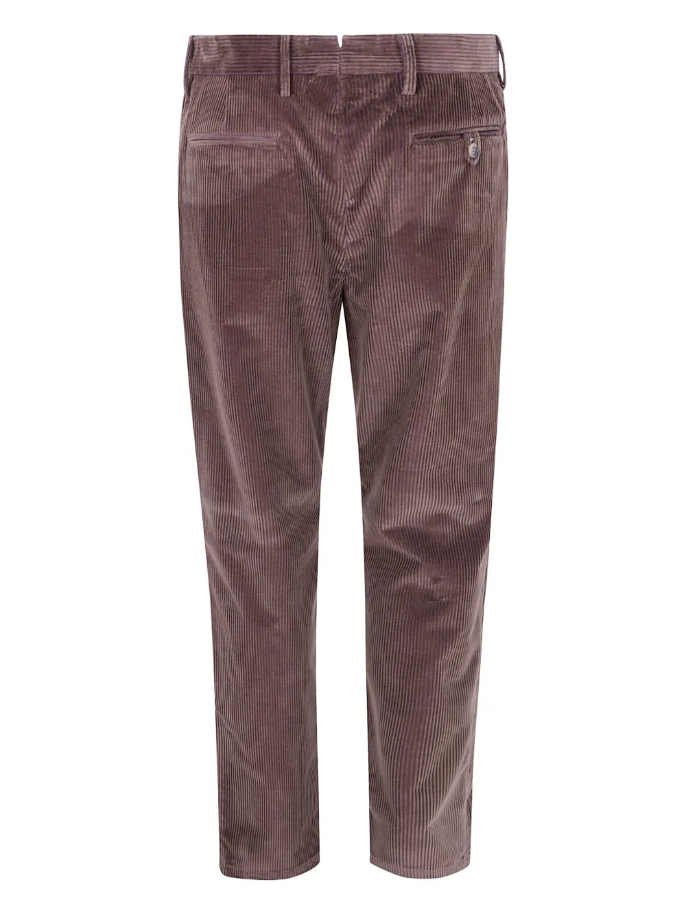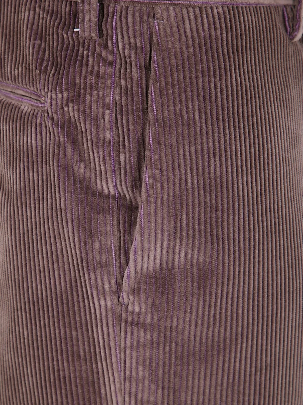 Коричневый в рубчик ширинка на пуговицах прорезные карманы прямые брюки
