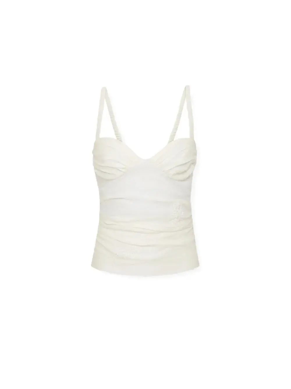 Молочно-белый сборка на лифе тонкие бретельки вырез сердечком без рукавов