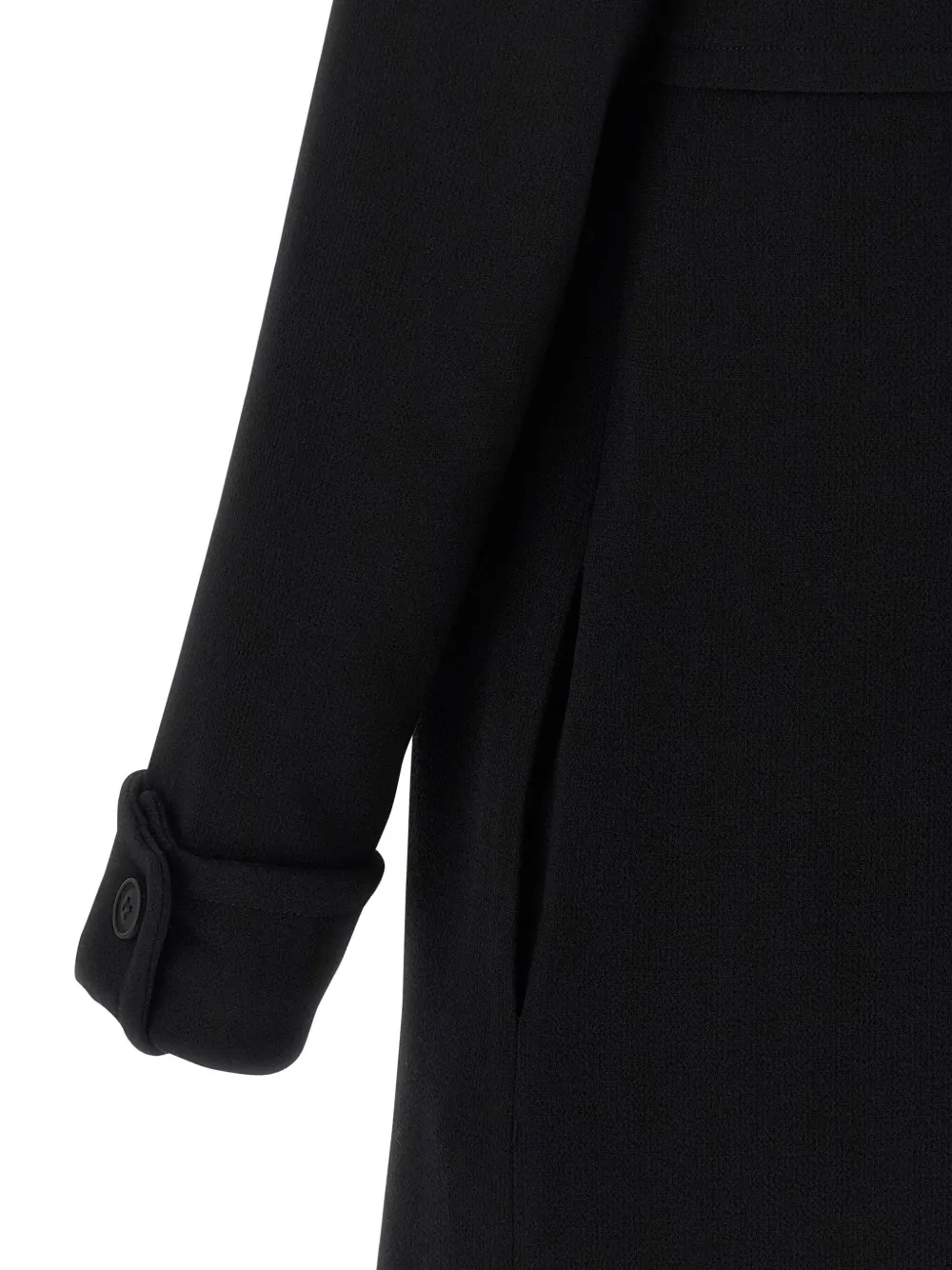Черный воротник Питер Пэн рукава с манжетами манжеты на пуговицах застежка-молния сзади боковые прорезные карманы