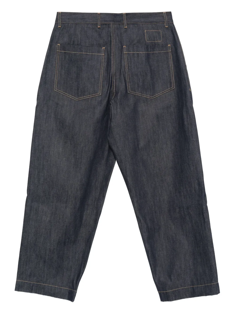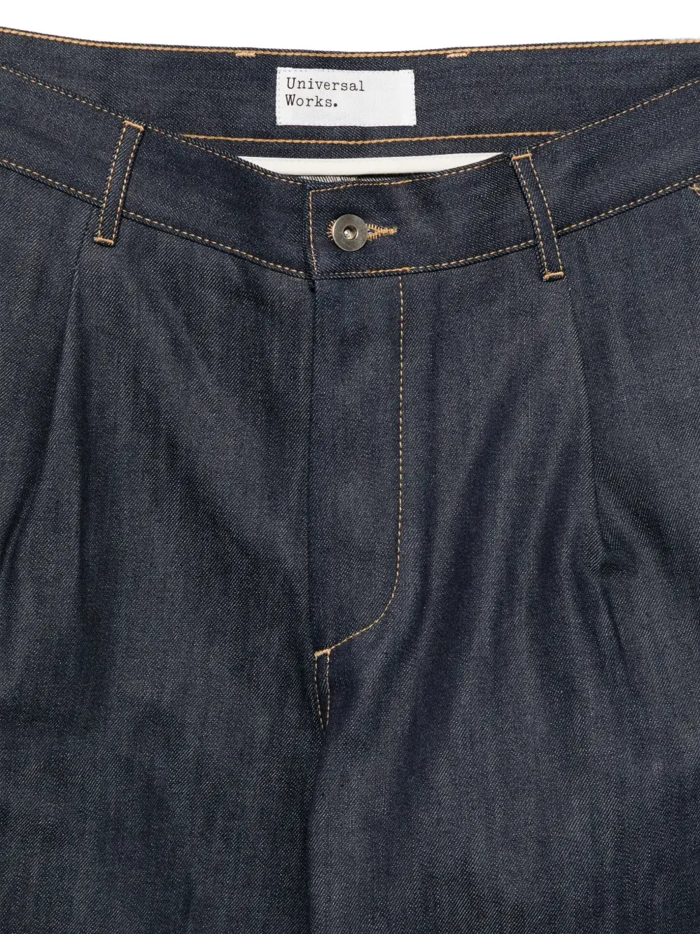 Индиго-синие хлопковые брюки с защипами спереди, застежкой на пуговицы и потайной молнией