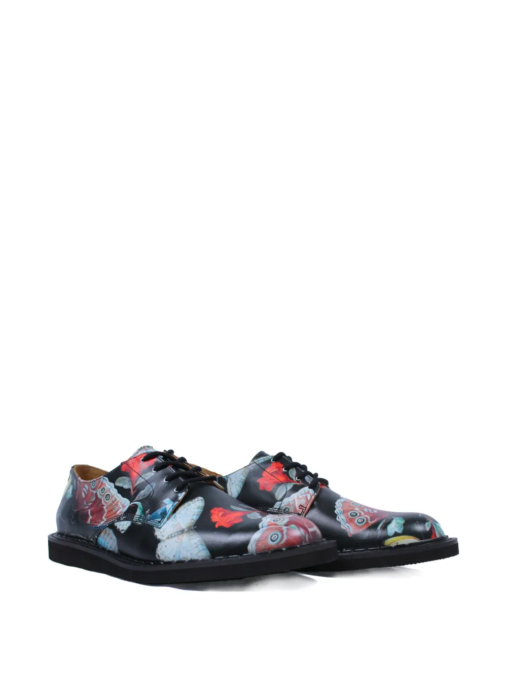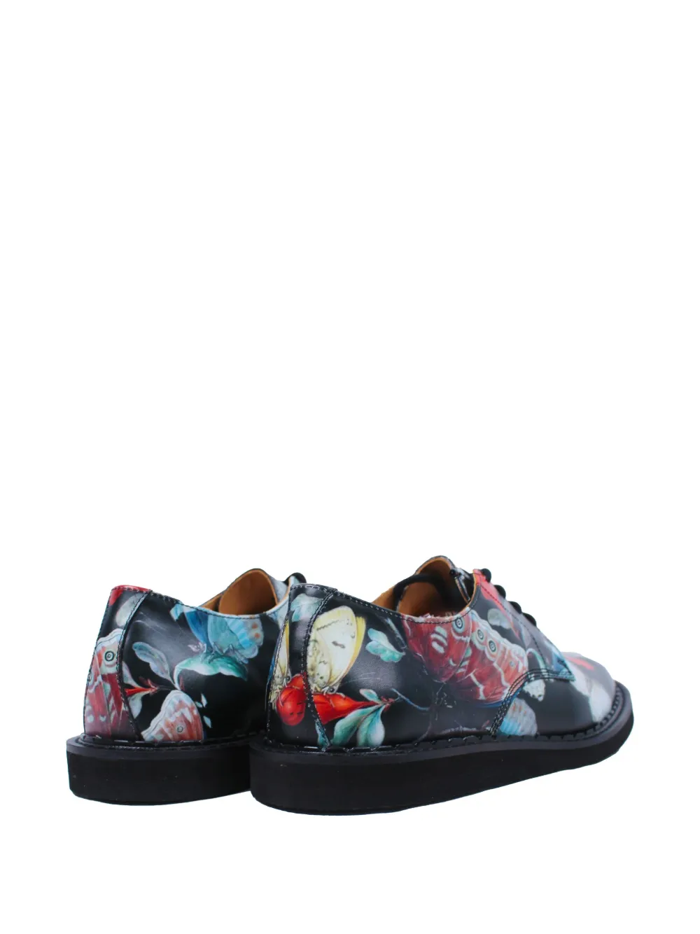 Черная кожаная обувь с принтом бабочек, шнуровкой, подошвой из крепа, круглым носком