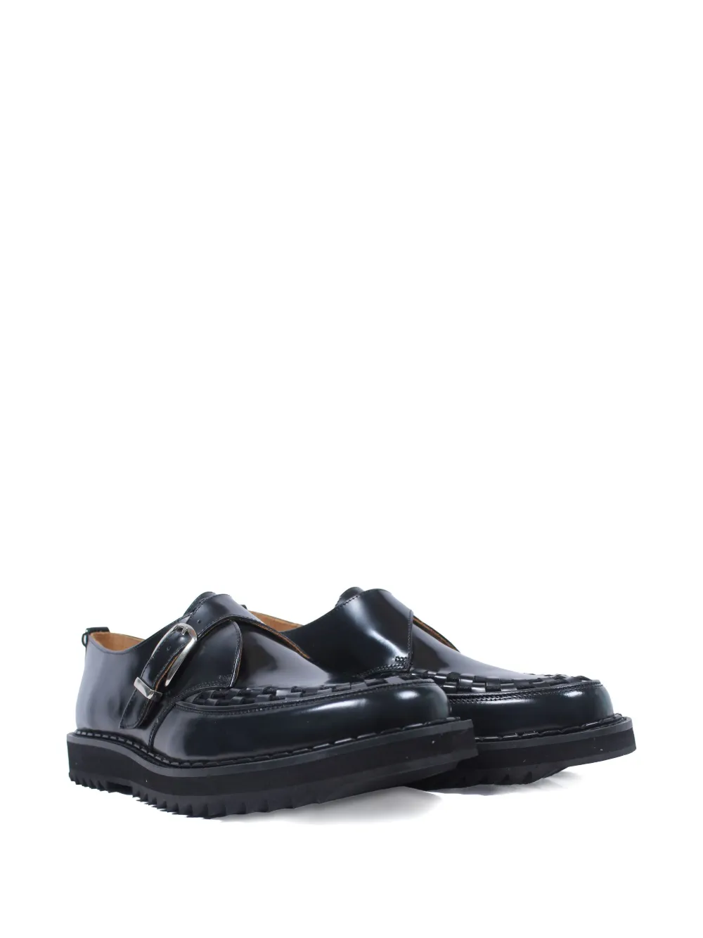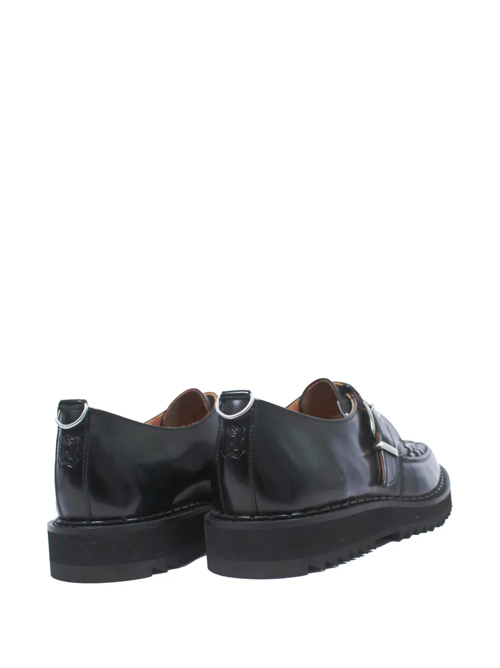 Черные кожаные туфли с одной пряжкой, с прошитой подошвой с волнообразным узором и рифленой подошвой типа "крипер"