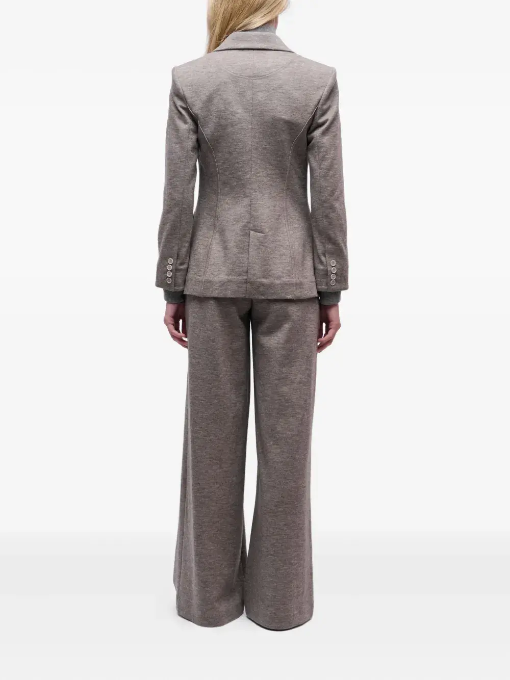 Светло-серый однобортный с лацканом с вырезом длинные рукава манжеты на пуговицах