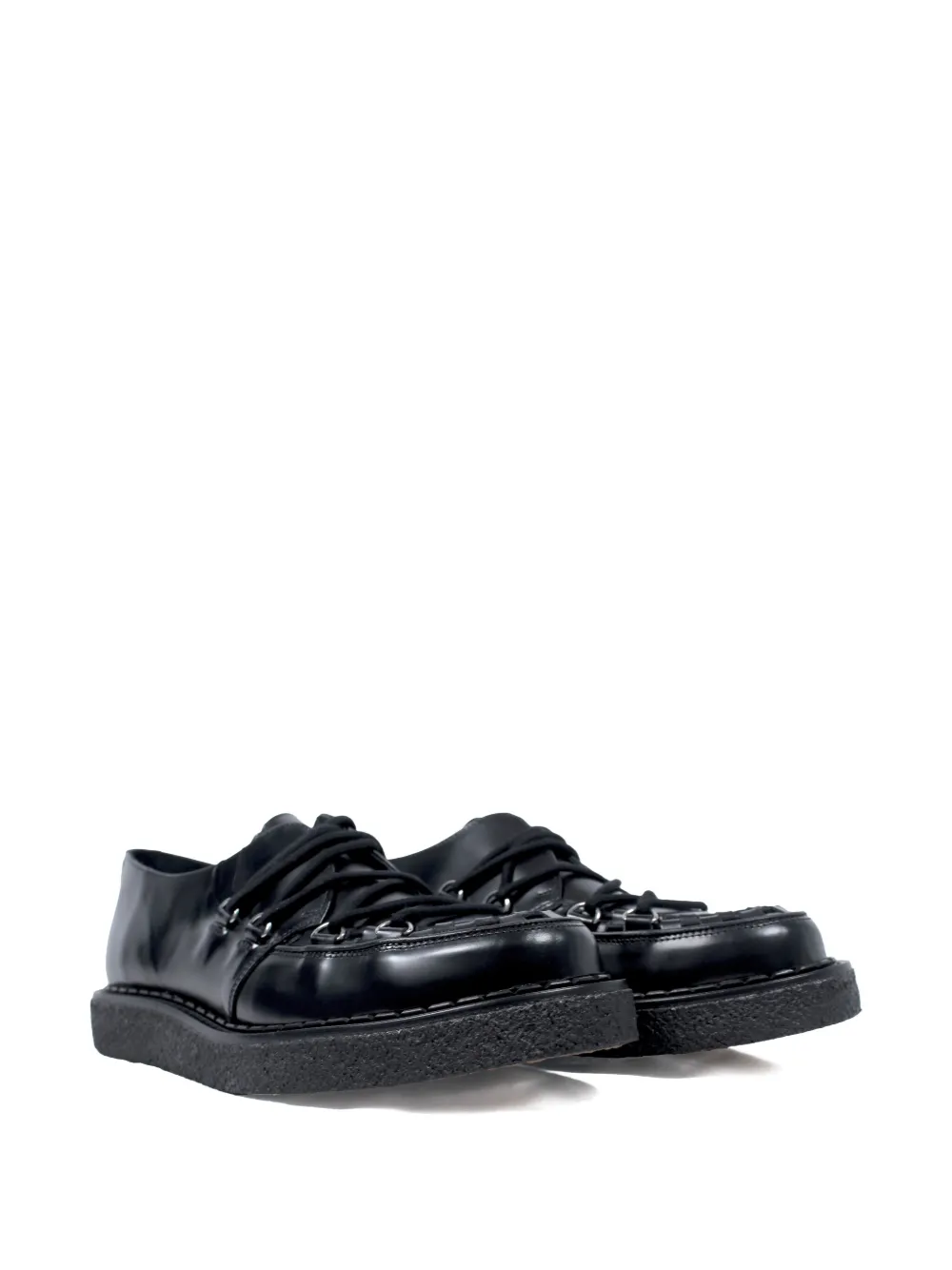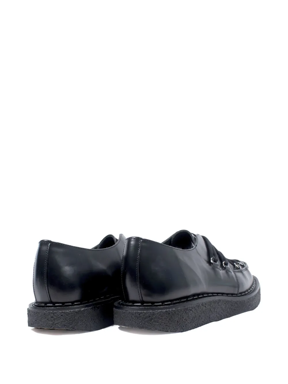 Верх из черной кожи, шнуровка, круглый носок, подошва из крепа, простроченные детали