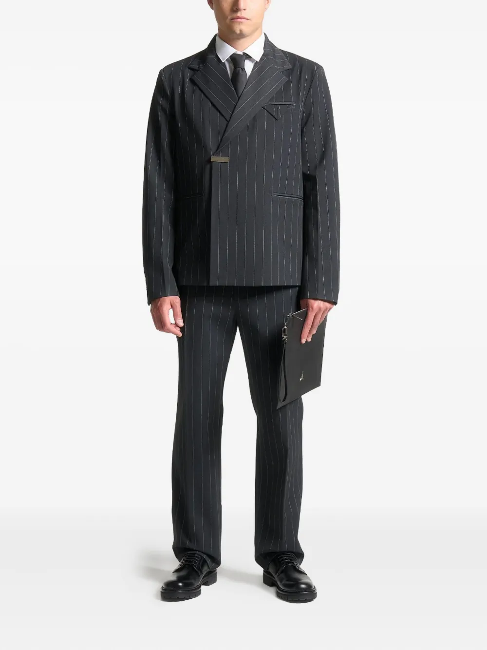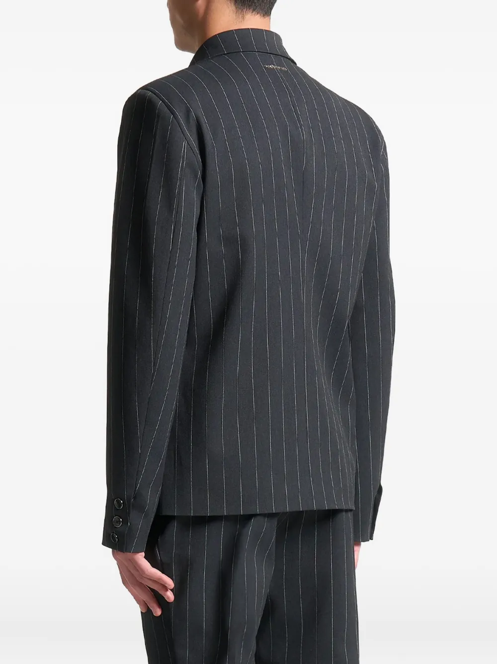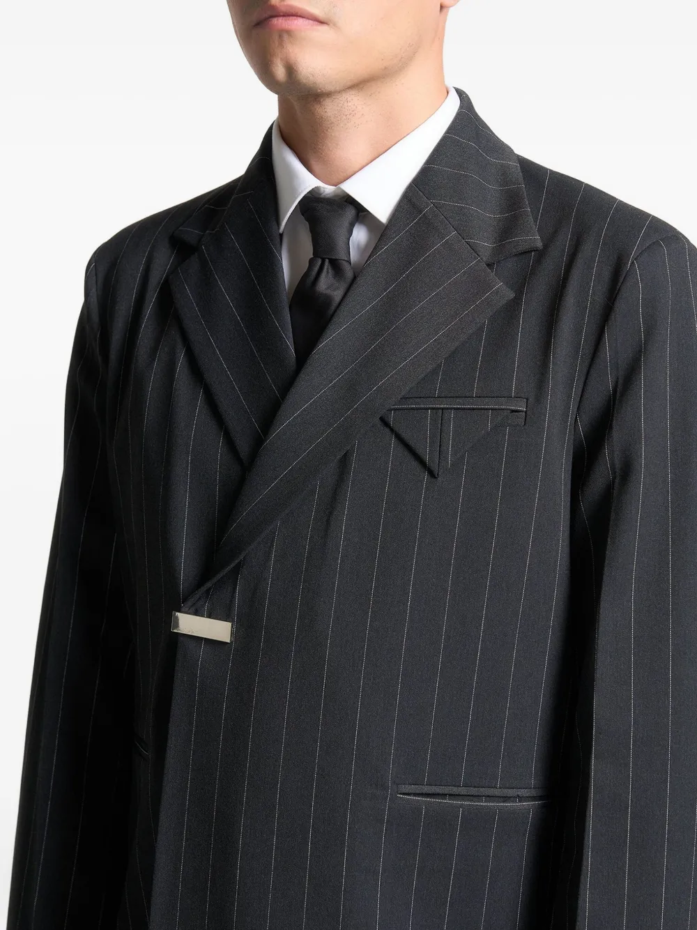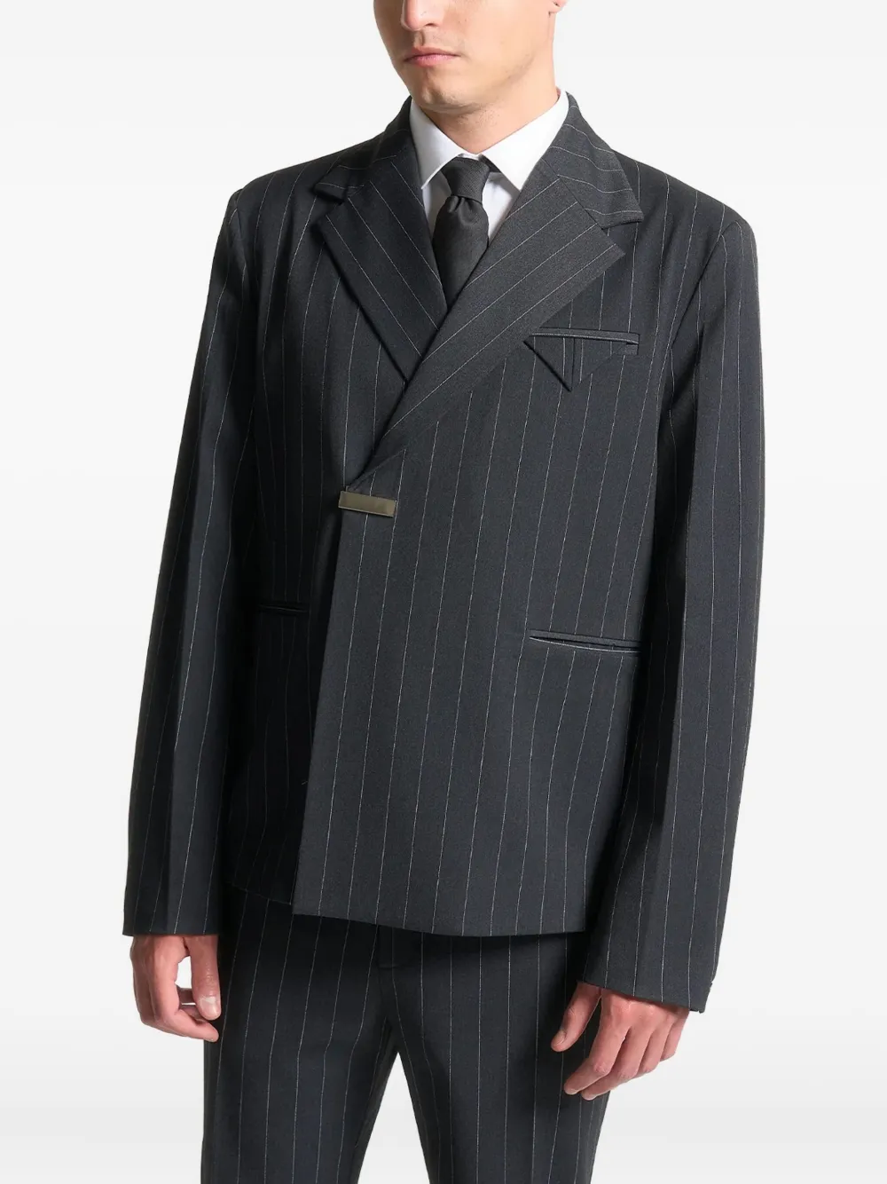 Темно-серый застежка на двубортные пуговицы принт в тонкую полоску воротник с лацканами длинные рукава