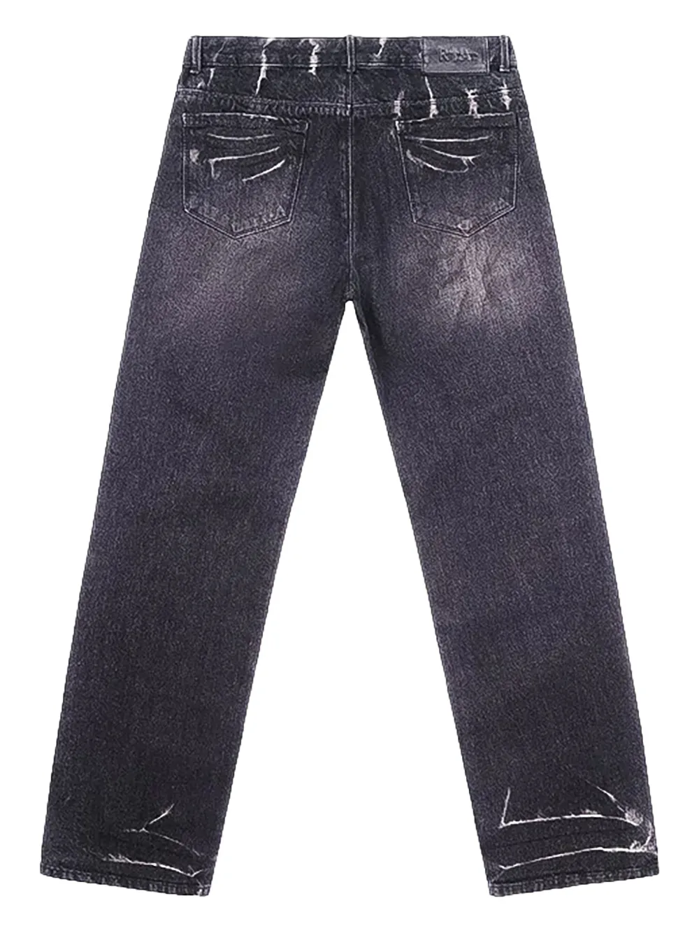 Черные джинсы с потертостями, эффектом выцветания, вышивкой по боковым швам, пятью карманами
