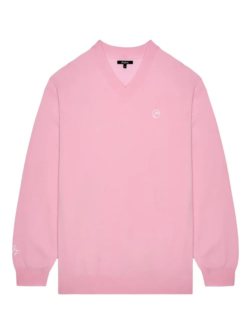 Розовая мериносовая шерсть V-образный вырез вышитый логотип длинные рукава